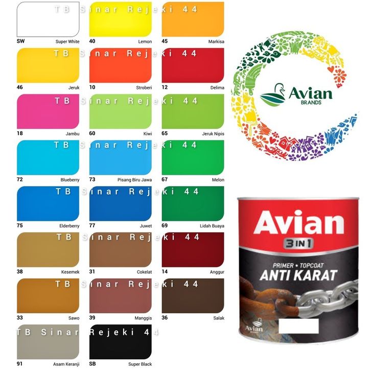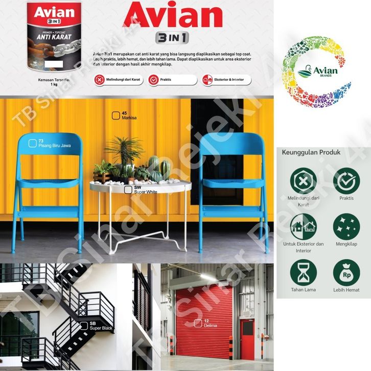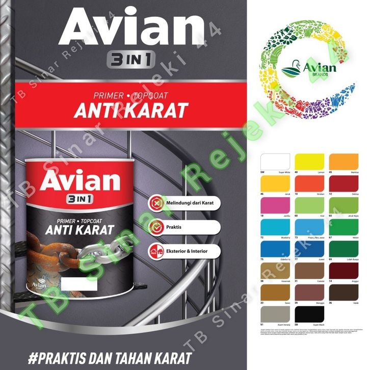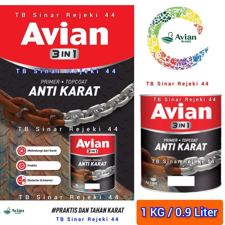 Cat Minyak Besi Kayu Primer Dasar Top Coat 0.9 Liter Avian 3 in 1 Anti Karat 1 KG 3in1