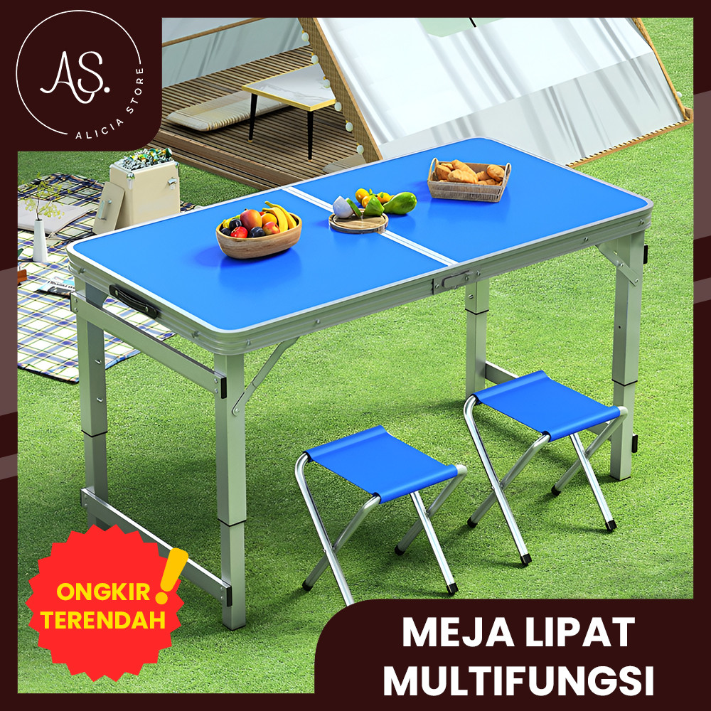 AS Meja Lipat Jualan Bentuk Koper Multifungsi Kaki Bulat/.Persegi + 2/4 Kursi