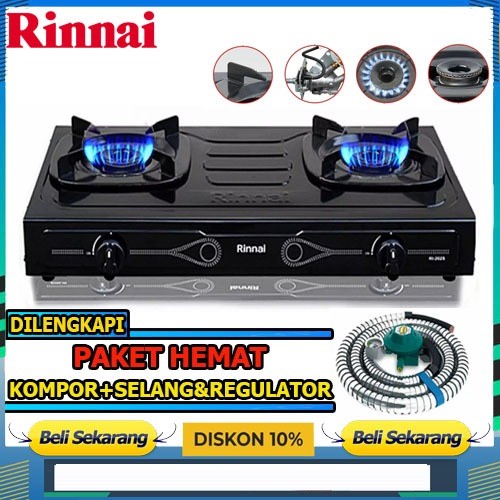 Kompor Gas Rinnai 2 Tungku RI-524A Turbo Stenlis Portable Komplit Murah Quantum Tanam Sanex Miyako Niko Advance 1 Tungku