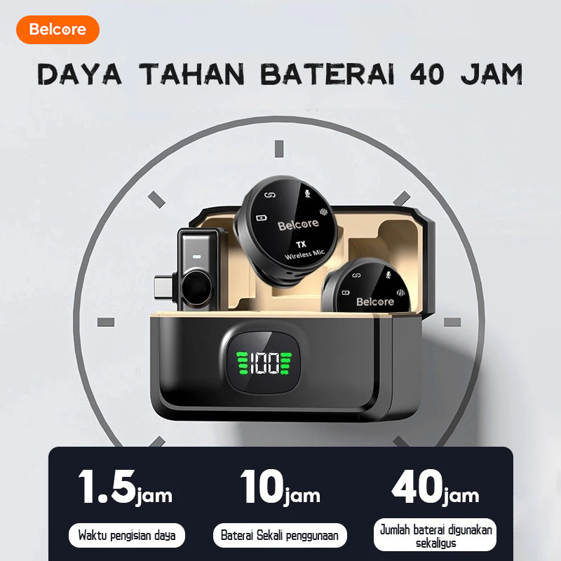 BELCORE D80 MAGNETIC WIRELESS CLIP ON MICROPHONE DUAL LAVALIER HP PLUG & PLAY LAPEL MIC WITH CHARGING CASE MIKROFON FOR