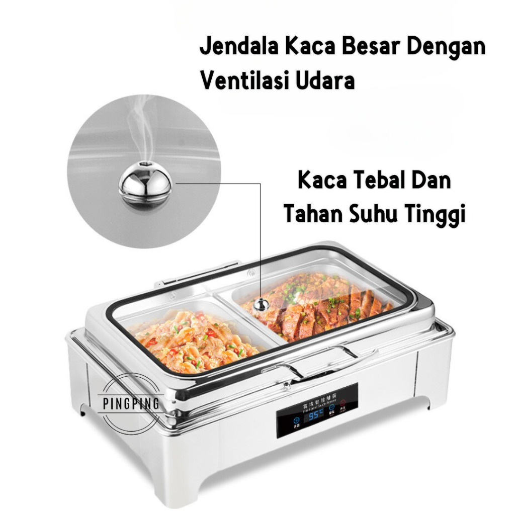 PINGPING - Chafing Dish / Rolltop Segi Kaca Catering Stainless Steel 9 L /tempat prasmanan/set tempat lauk dan sayur/tem