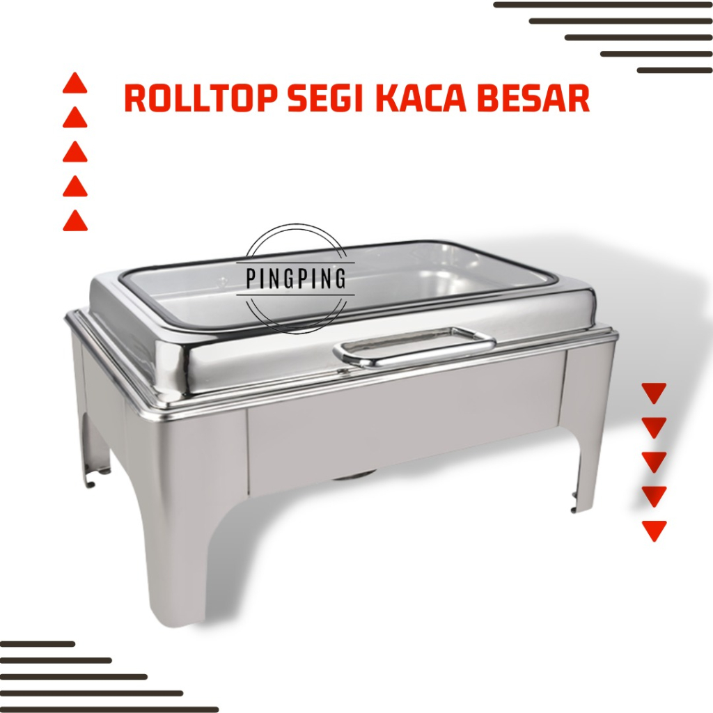 PINGPING - Chafing Dish / Rolltop Segi Kaca Catering Stainless Steel 9 L /tempat prasmanan/set tempat lauk dan sayur/tem