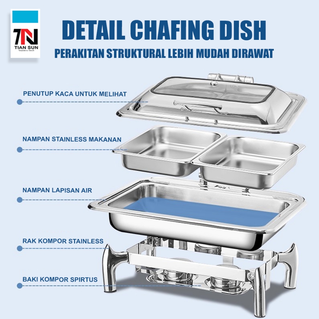 Tian sun Alat prasmanan stainless Bentuk persegi dan Bulat Kapasitas 6L & 9L -Roll top Prasmanan set