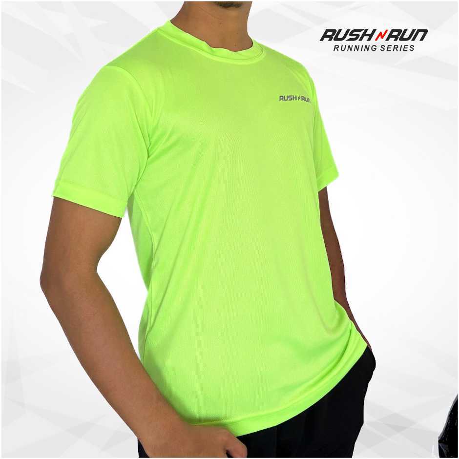 Rush n Run Baju Kaos Olahraga Lari Running Pria Bahan Dry Fit Warna Terang Hijau Stabilo