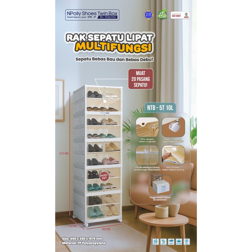 NAPOLLY NTB- 1T 2L / 3T 6L / 5T 10L Twin Box Rak Sepatu Lipat / Lemari Penyimpanan Multifungsi Lipat Portable (Serbaguna
