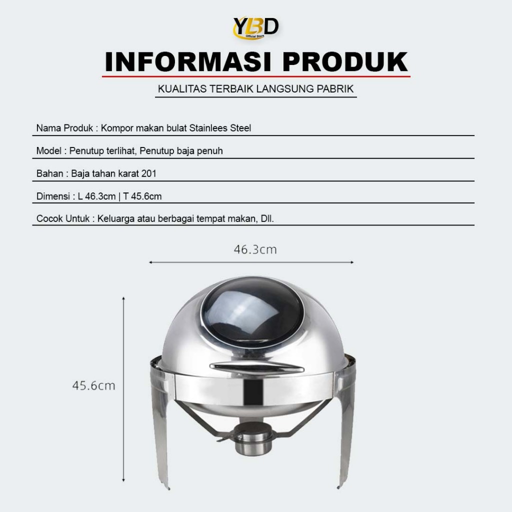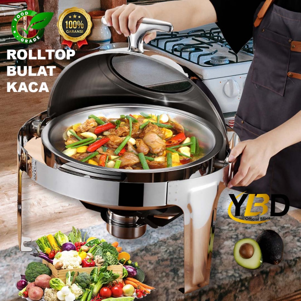 Prasmanan Roll Top Stainless Steel 6.8 Liter Tutup Stainless & Tutup kaca | Roll top prasmanan bulat Gold & silver | Per