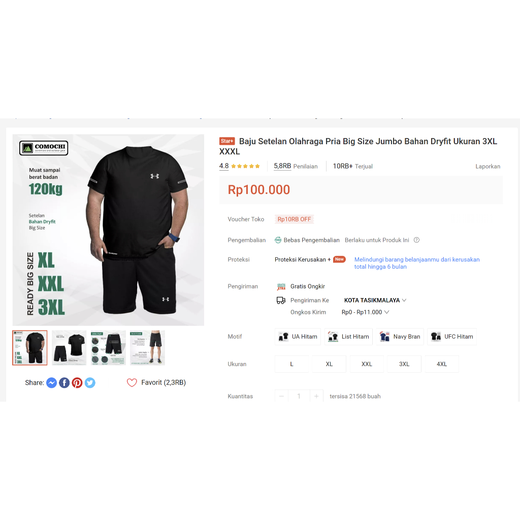 Baju Setelan Olahraga Pria Big Size Jumbo Bahan Dryfit Ukuran 3XL XXXL