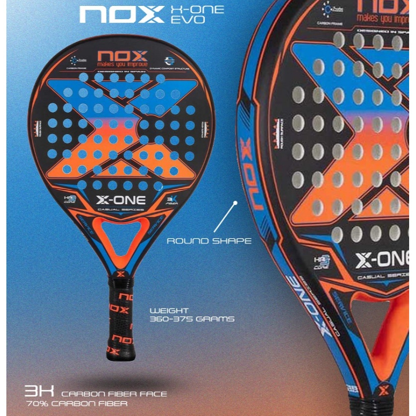 Raket NOX-X ONE EVO Padel Racket Racquet CASUAL SERIES Olah 3K FIBER CARBON Hitam adias original