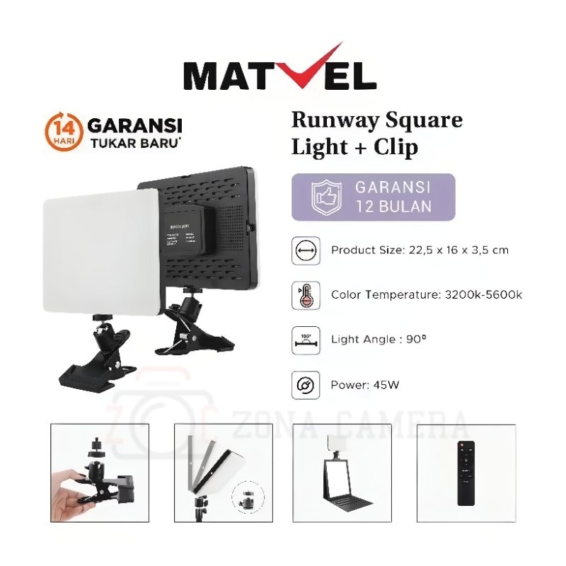 Matvel M240 Runway Square Led Video Light Fill Make Up Mua Artis Lampu Jepit Remote M-240 M 240 Set