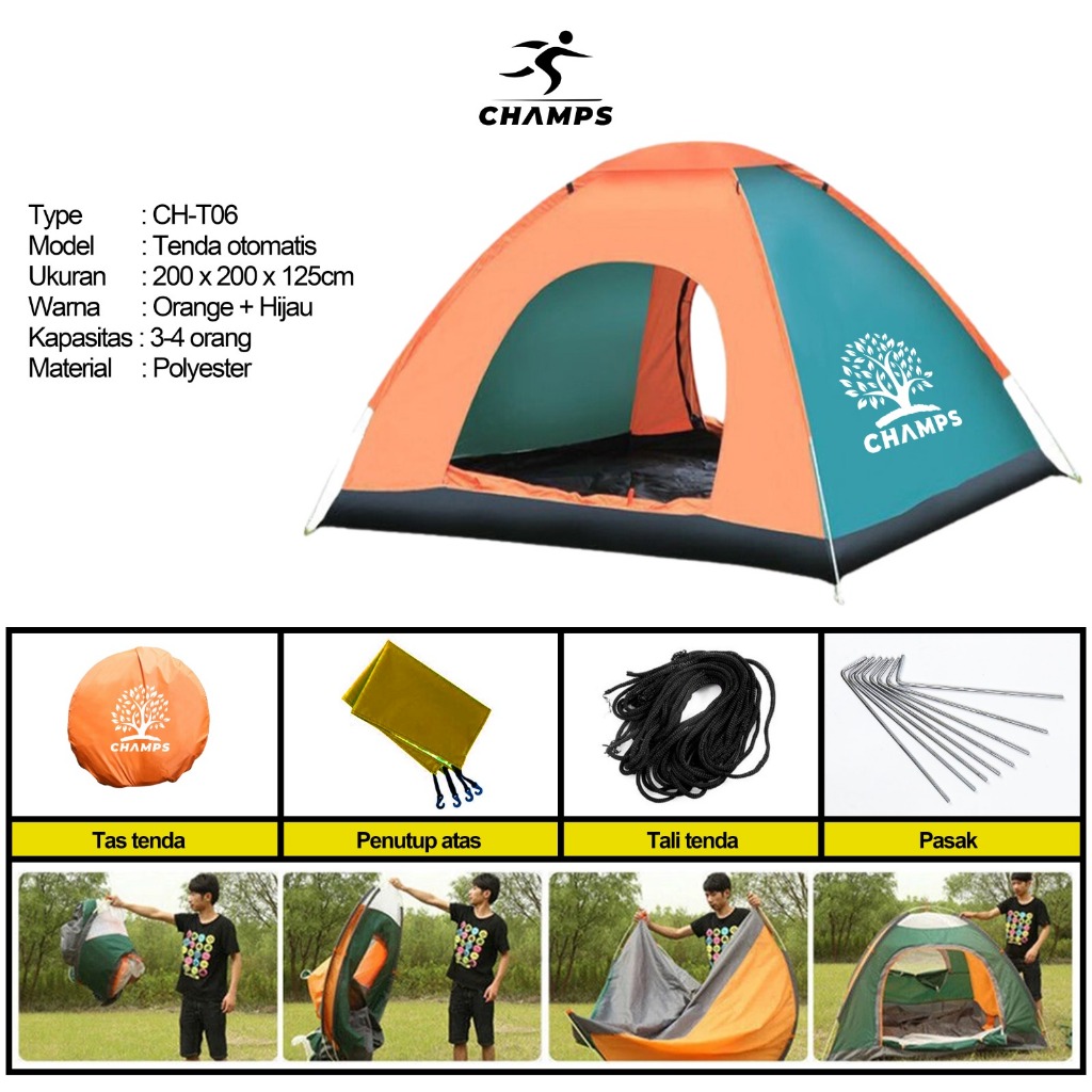 CHAMPS Tenda Camping Otomatis Lipat | Tenda Portable Outdoor Indoor | Tenda Gunung el Damo Camo | Tenda Kemping Murah Pr