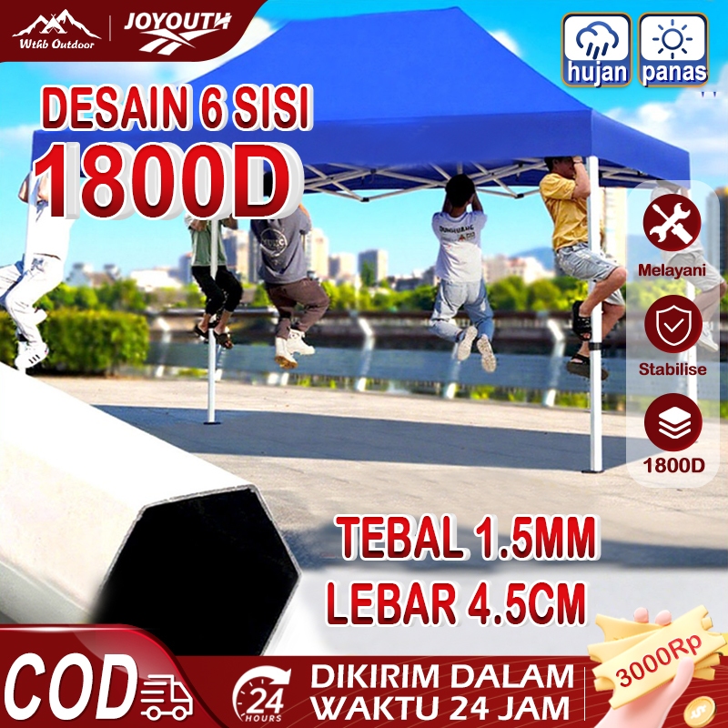 JOY Tenda Jualan 3x4.5 rangka tenda lipat 3x6 6 SISI Hexagonal Heavy Duty 1800D Tenda lipat Berani
