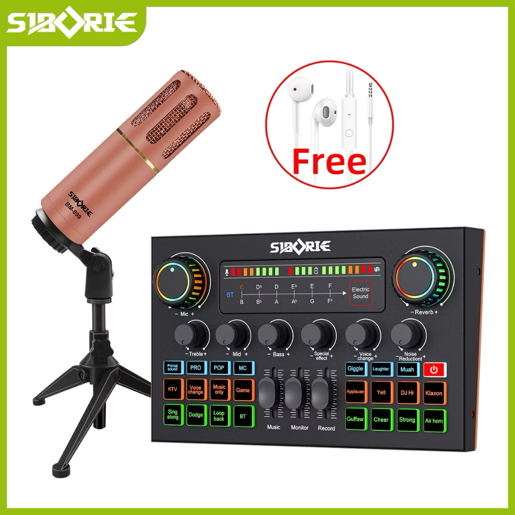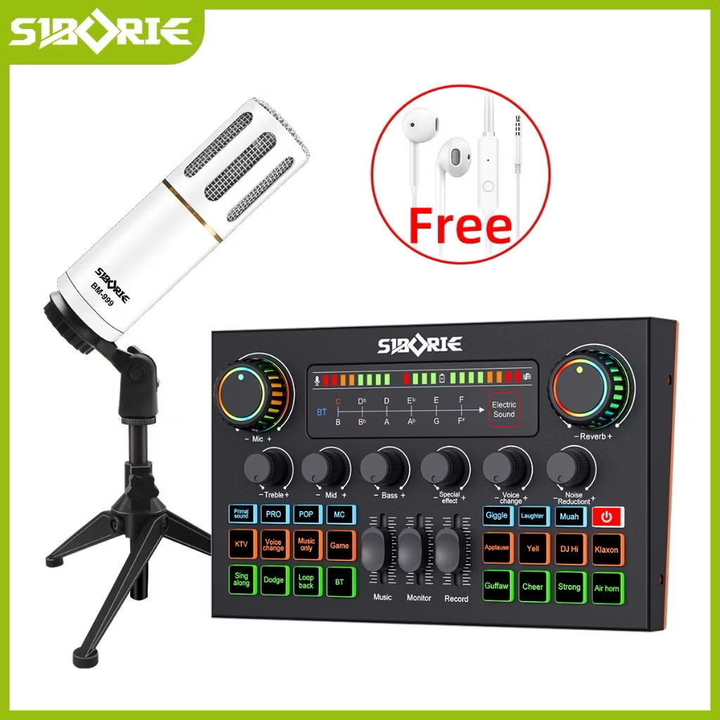 Siborie F999ultra Hitam Soundcard+BM999 Mic+E10 Headset Paket Lengkap Mixer Bluetooth Sound Card For Streaming Langsung
