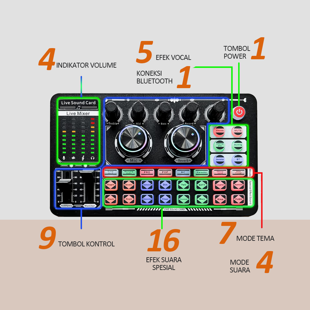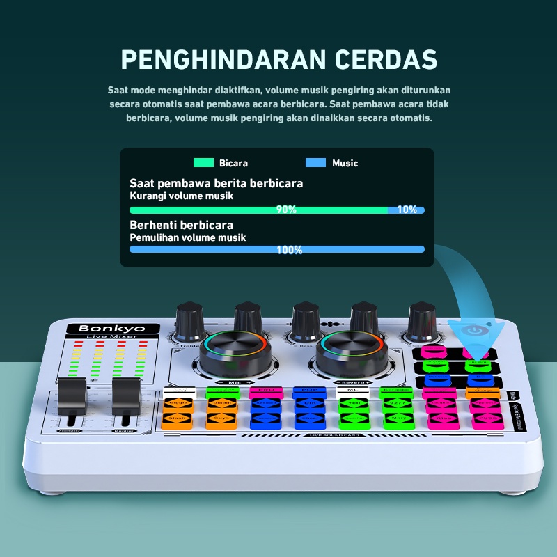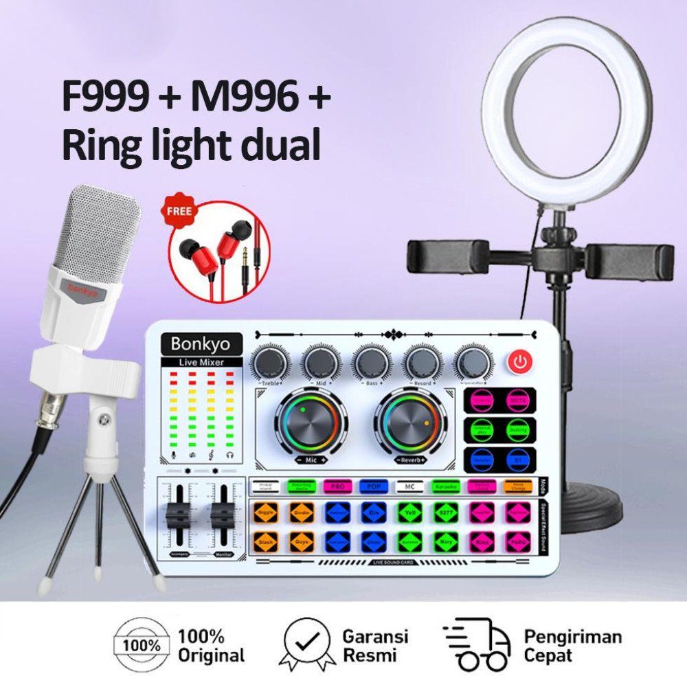 BONKYO F999 SOUND CARD BERNYANYI MEREKAM PERALATAN PROFESIONAL SIARAN LANGSUNG DENGAN LAMPU PENGISI SIARAN LANGSUNG