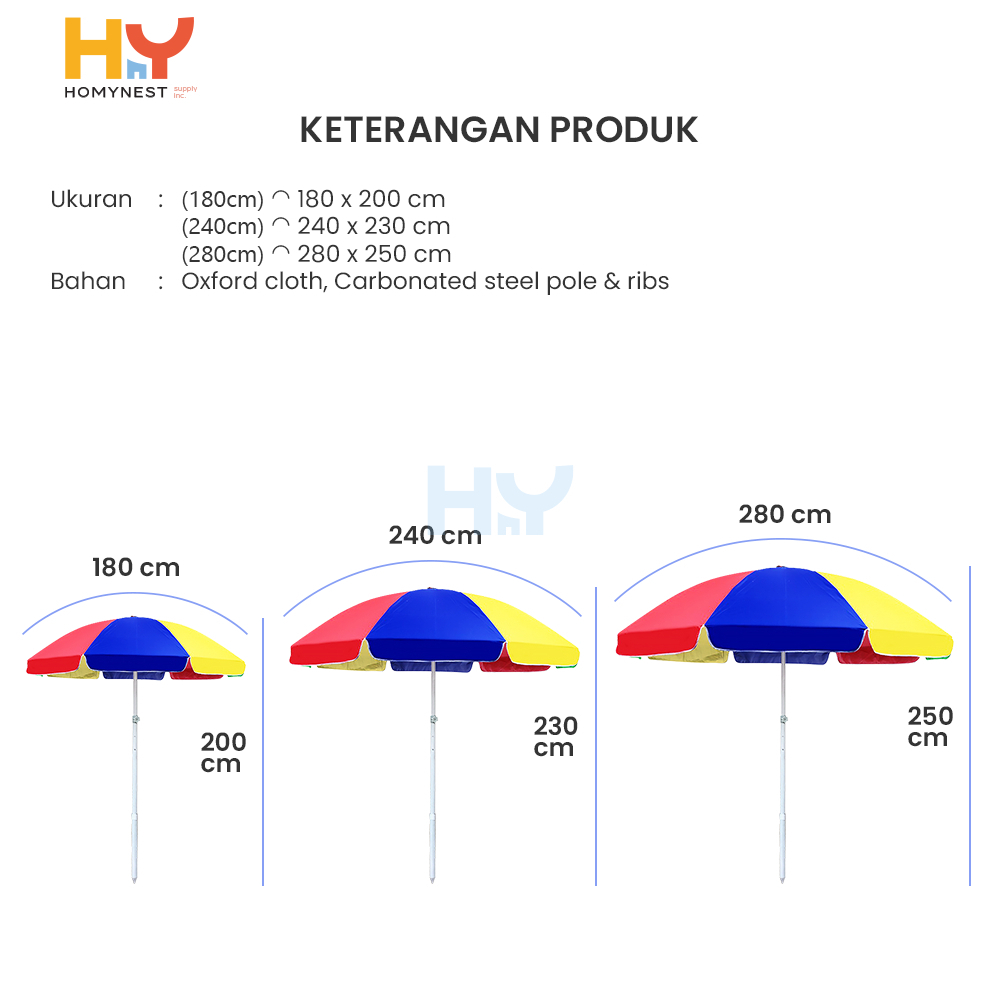 HOMYNEST Payung Dagang Jualan Warna Pelangi Ukuran 180 Cm 240 Cm 280 Cm Kain Tebal Anti UV Berkualitas