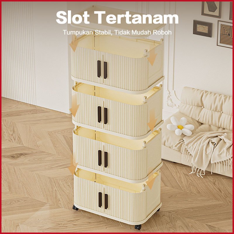 LEMARI PLASTIK LIPAT BERODA 48CM | ESTETIK, TANPA INSTALASI | KAPASITAS BESAR DIY(GIANTMENG) MODEL TERBARU TERLARIS