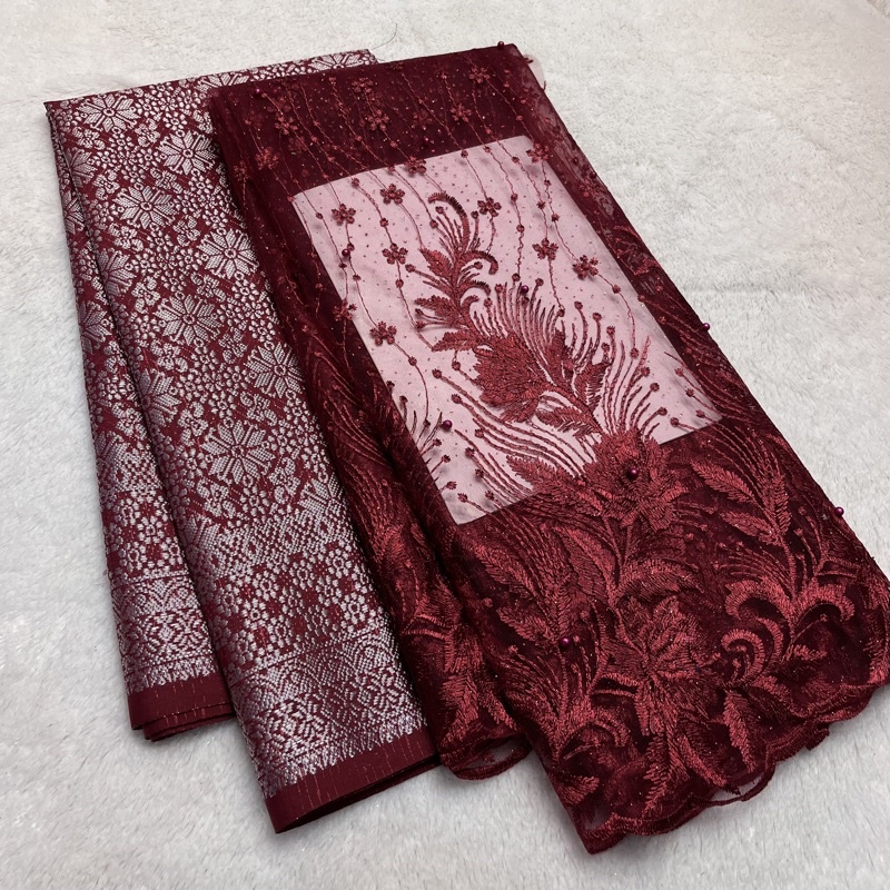 Set/Paket Kain Bridesmaid Tille Bordir Mutiara & Songket