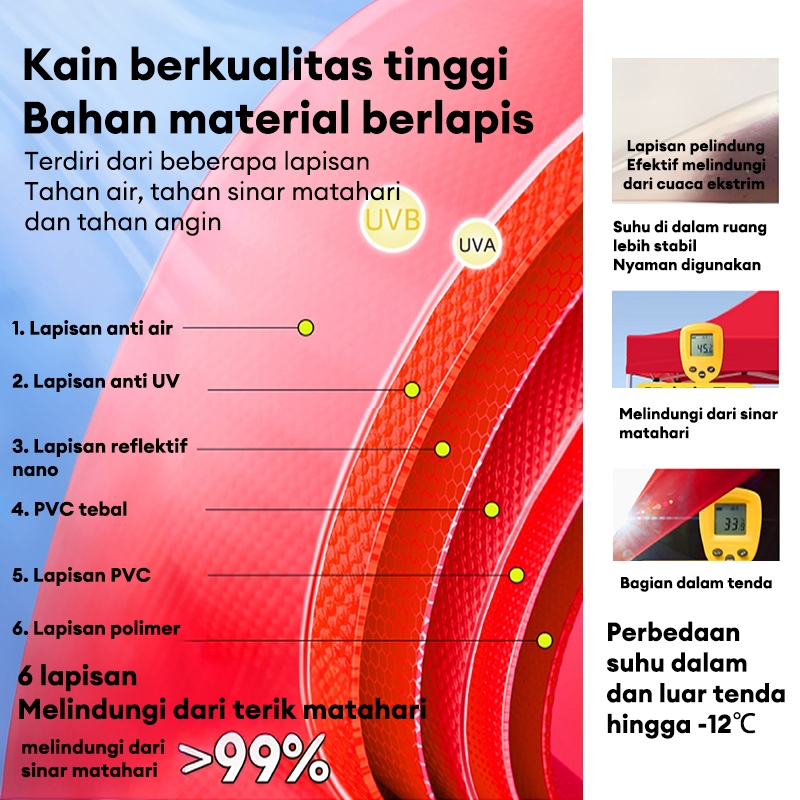 🟥⭐⭐⭐⭐merah-2x2m, 🟦⭐⭐⭐⭐biru-2x2m, 🟨Khaki-2x2m, ⬜Putih-2x2m, 🟩Hijau-2x2m, 🟥⭐⭐⭐⭐merah-3x3m, 🟦⭐⭐⭐⭐biru-3x3m, 🟨Khaki-3x3m, 🟩Hijau-3x3m, ⬛hitam-3x3m, 🟥⭐⭐⭐⭐merah-2x3m, 🟦⭐⭐⭐⭐biru-2x3m, 🟥⭐⭐⭐⭐merah-2.5x2.5m, 🟦⭐⭐⭐⭐biru-2.5x2.5m, 🟨Khaki-2.5x2.5m, 🟥merah-2x2m+3mika, 🟦biru-2x2m+3mika, 🟥merah-2x3m+3mika, 🟦biru-2x3m+3mika, 🟥merah-3x3m+3mika, 🟦biru-3x3m+3mika, merah-2x2m