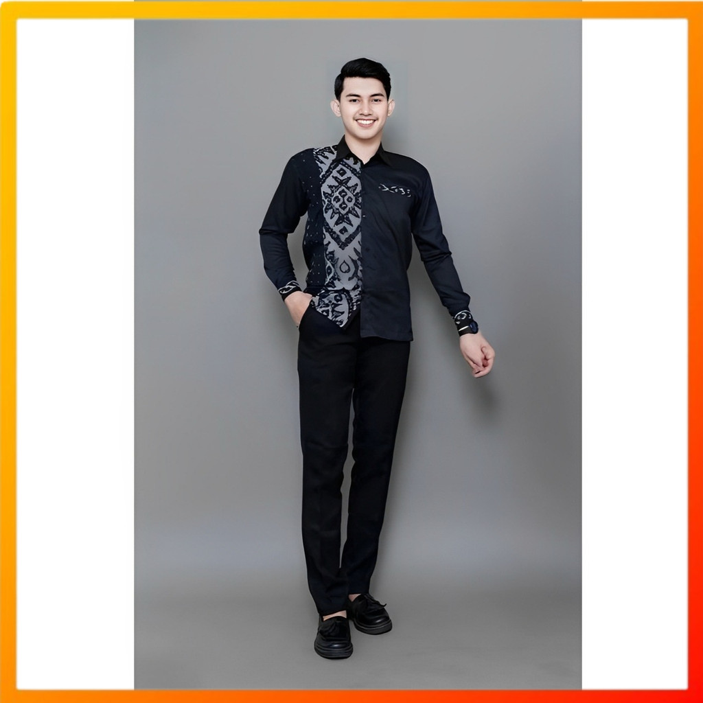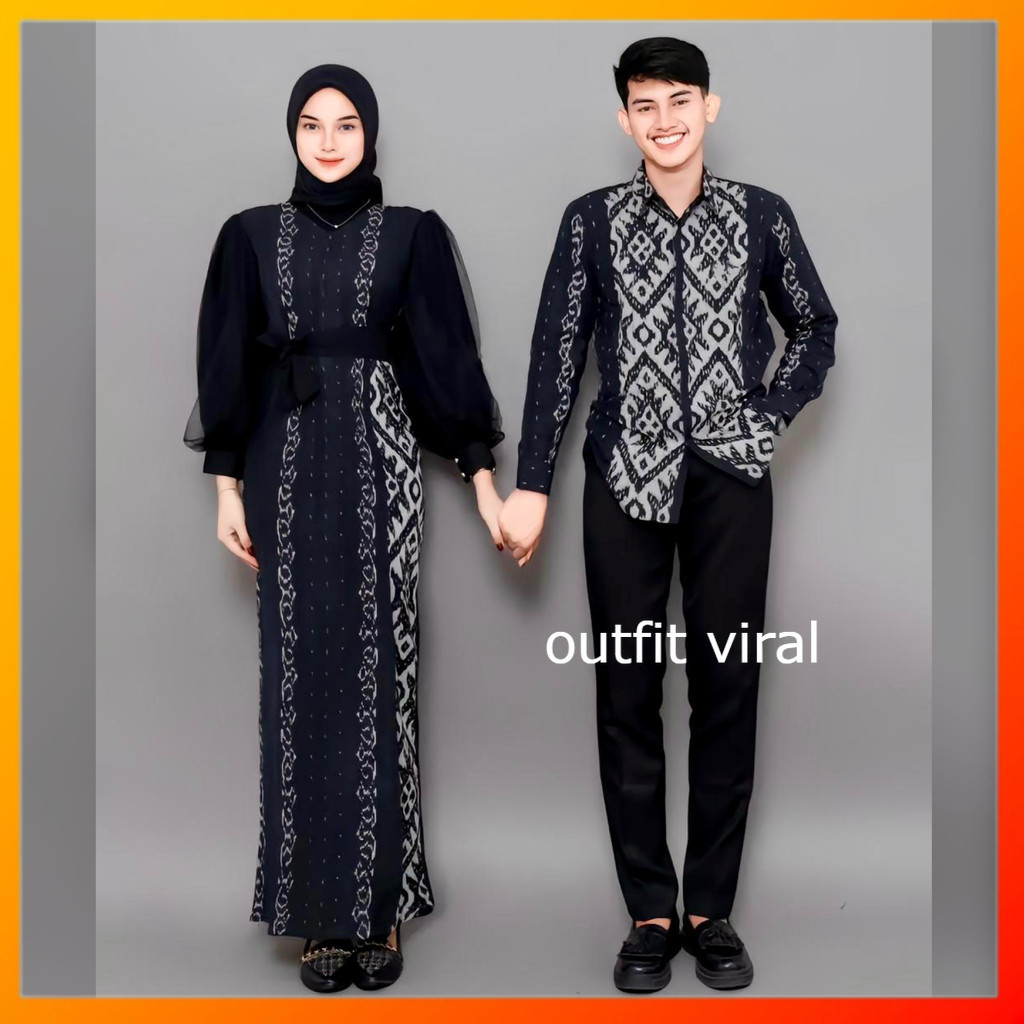 BAJU TENUN COUPLE NEW PADMA BLACK DRESS DAN KEMEJA OUTFIT VIRAL