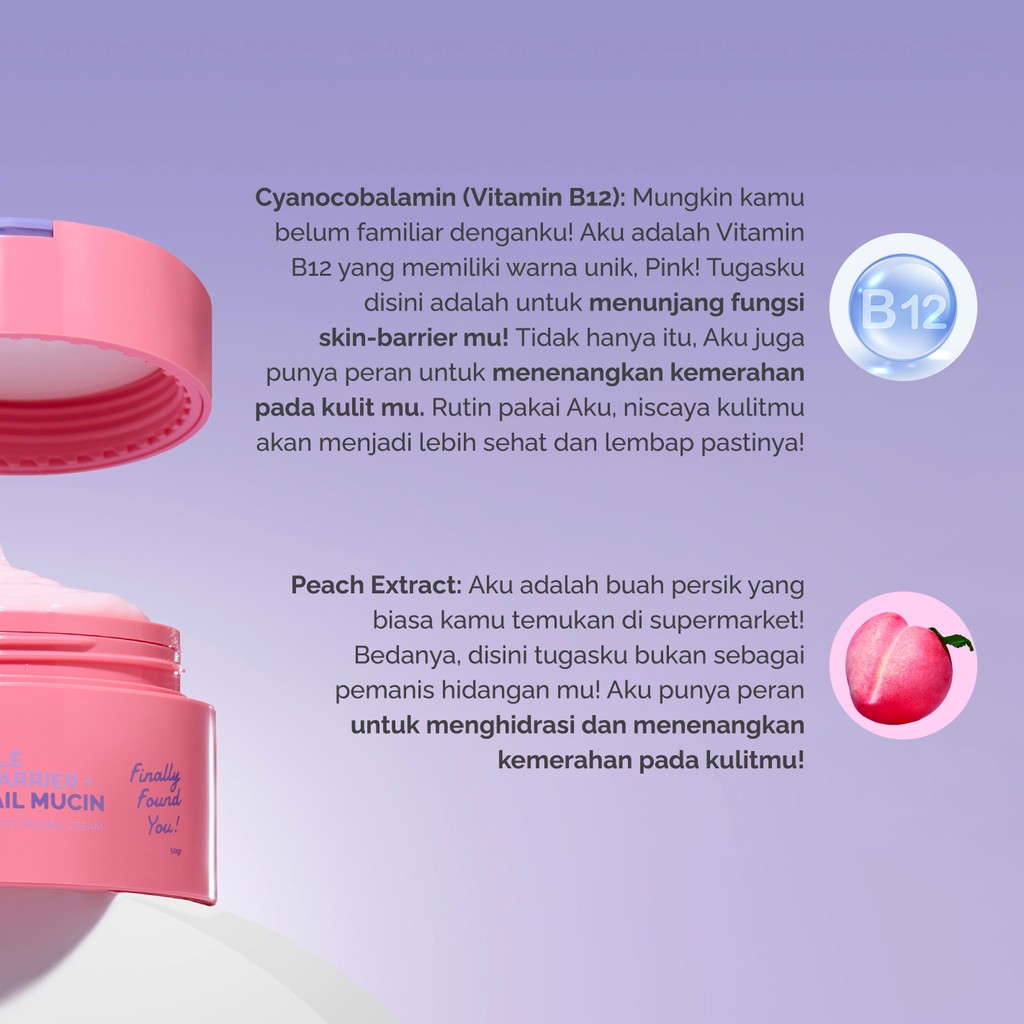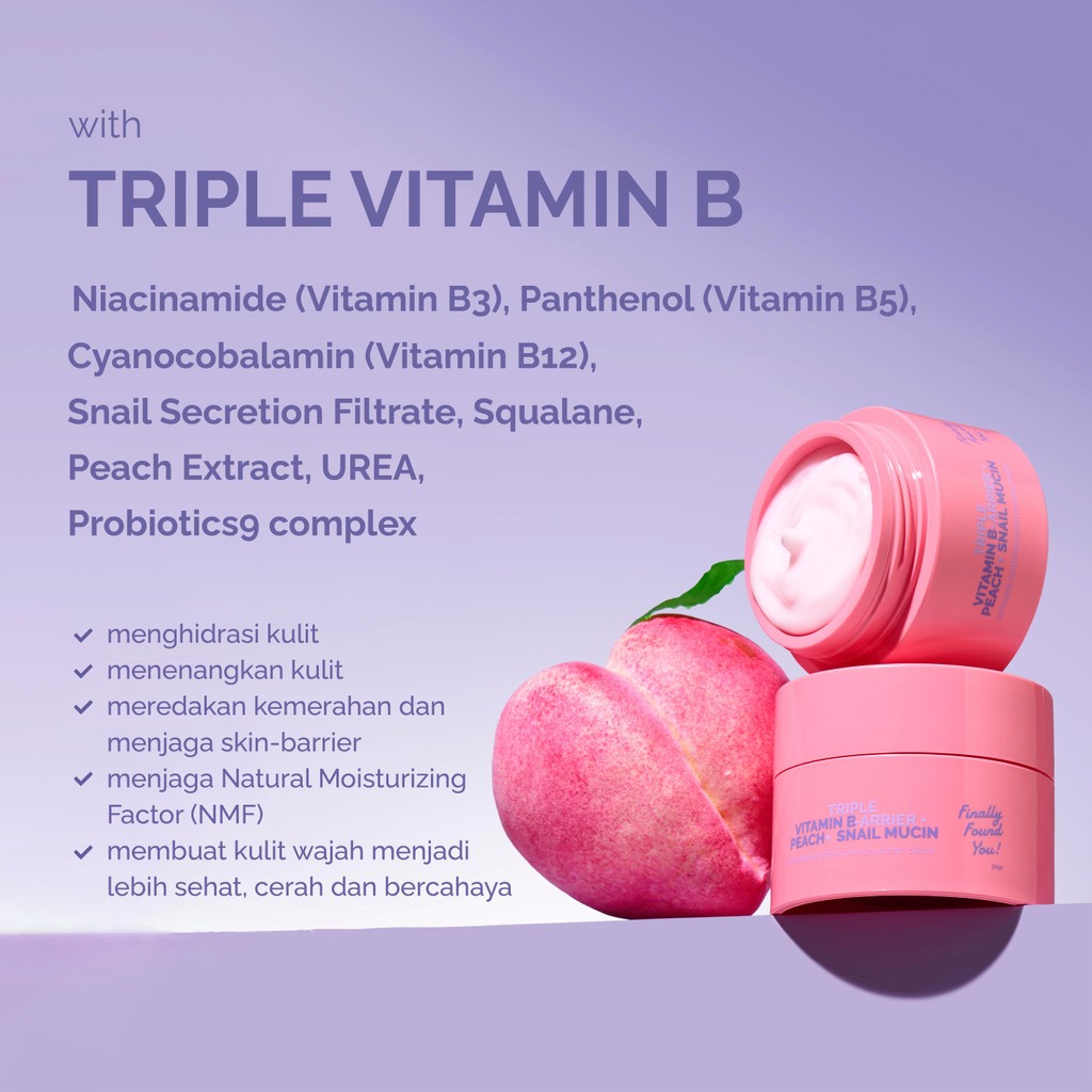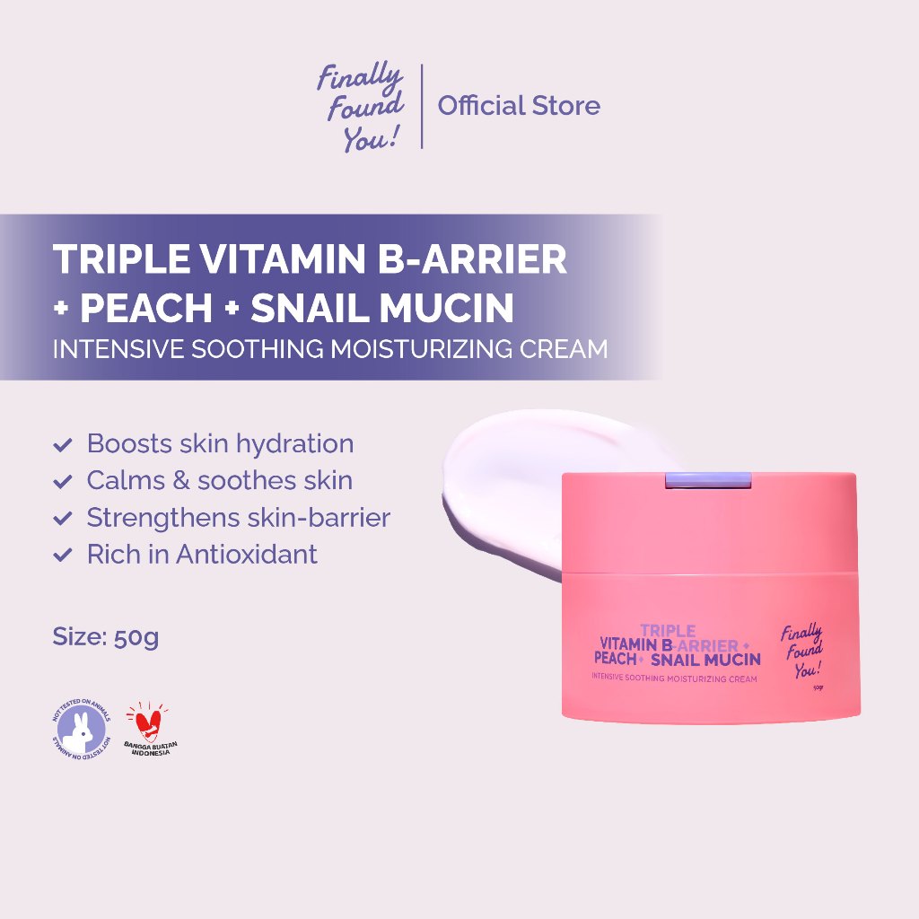 Finally Found You! TRIPLE VITAMIN B-ARRIER + PEACH + SNAIL MUCIN Intensive Soothing Moisturizing Cream 50gr BPOM