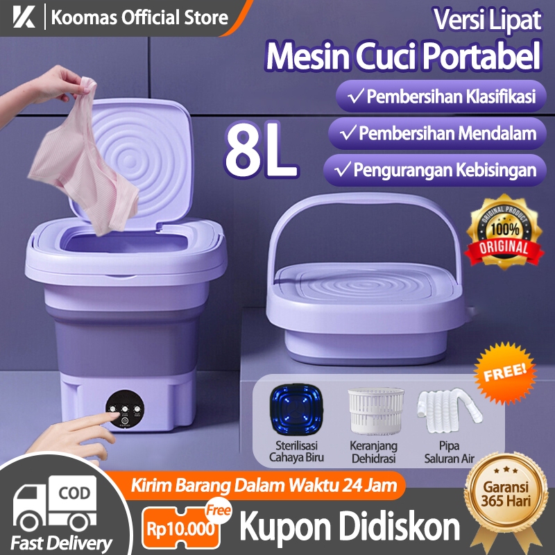 Koomas Mesin Cuci Mini Portable 2 Tabung 8L Mesin Cuci Lipat Otomatis Mesin Pengering Pakaian Sterilisasi Cahaya Biru