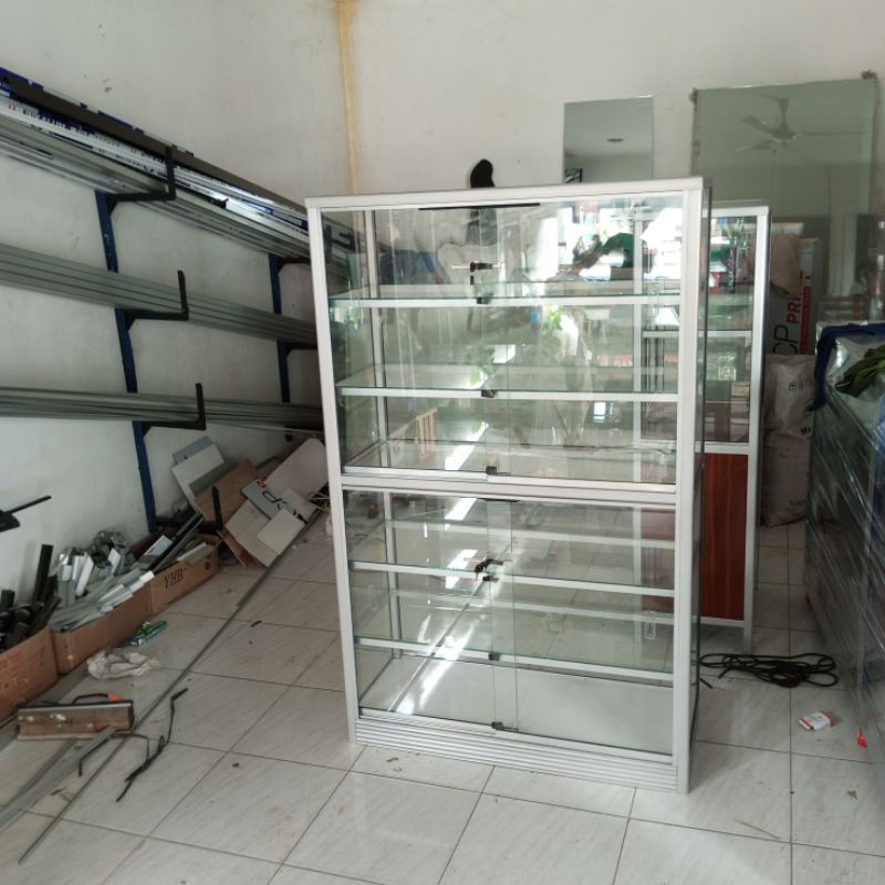 Etalase Tinggi 150cm Aluminium Kaca Bening
