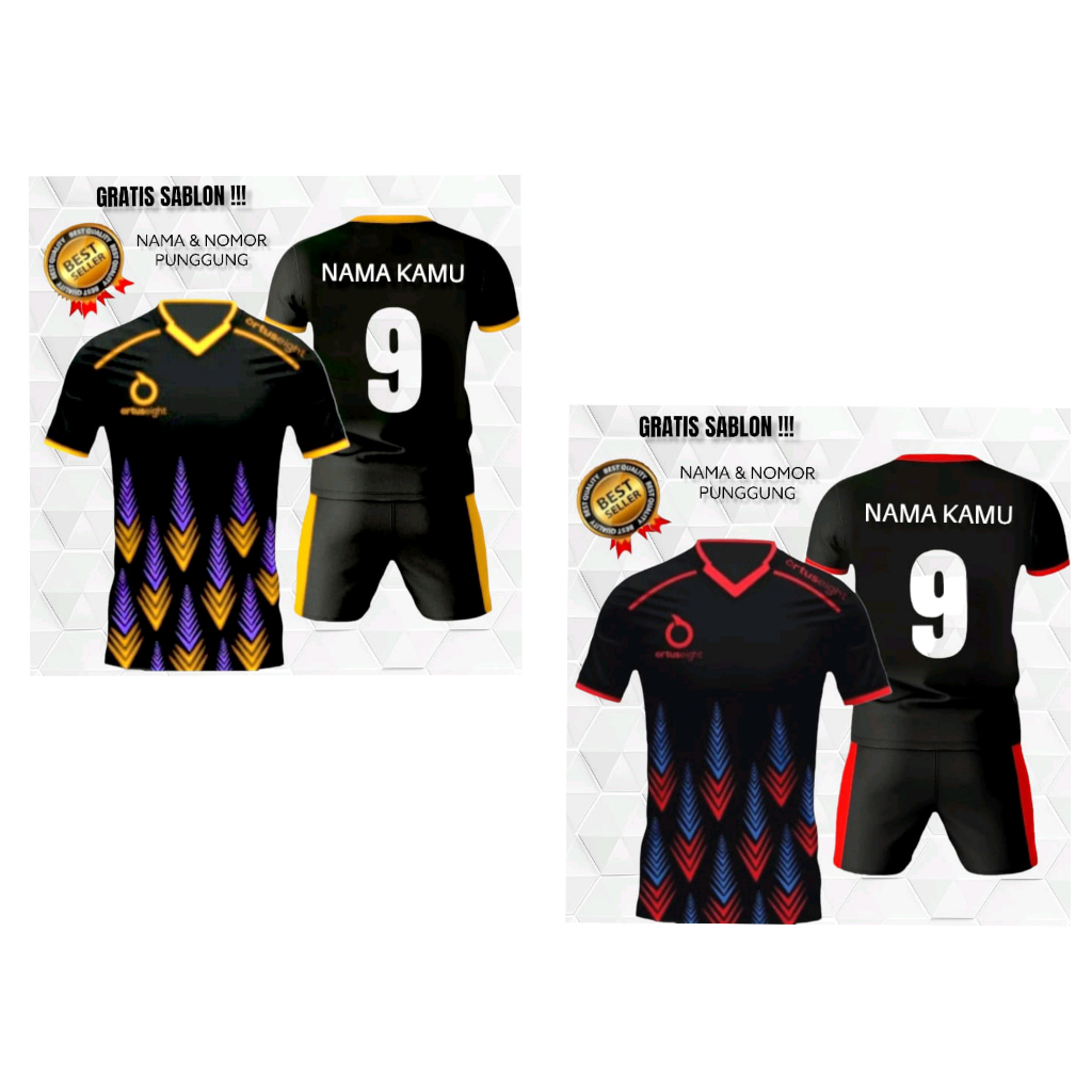 Stelan Kaos Olahraga Baju Jersey Dewasa Sepak Bola Futsal Voli Badminton Bulutangkis Tenis Gym Gratis Custom Nama Dan Nomor Punggung