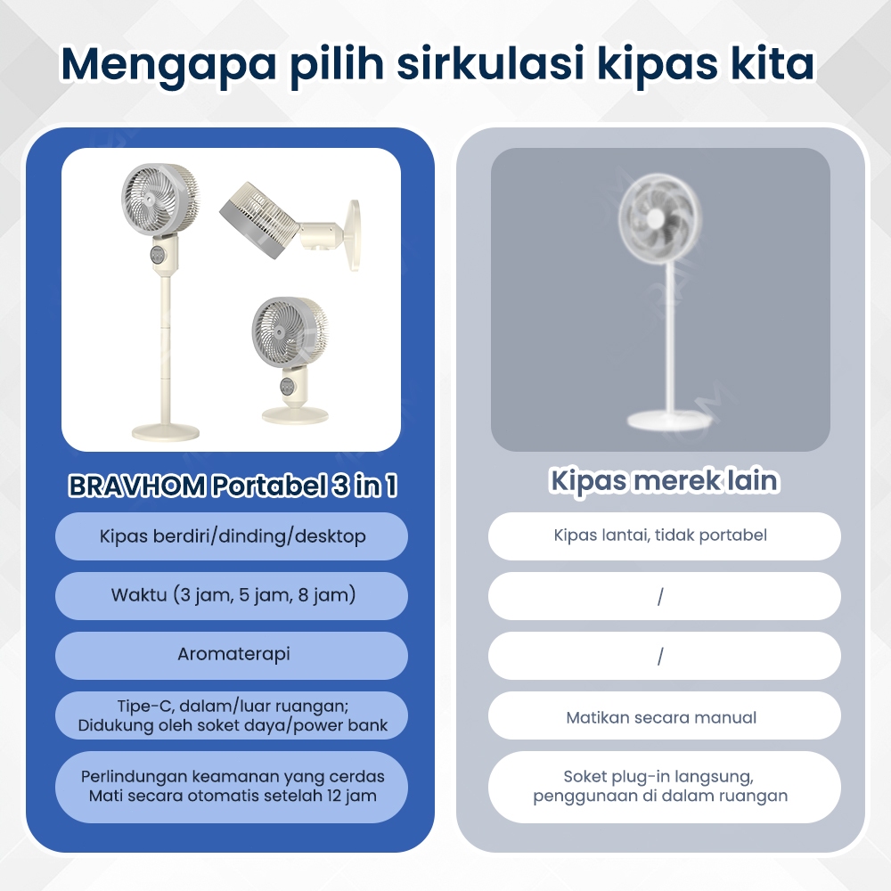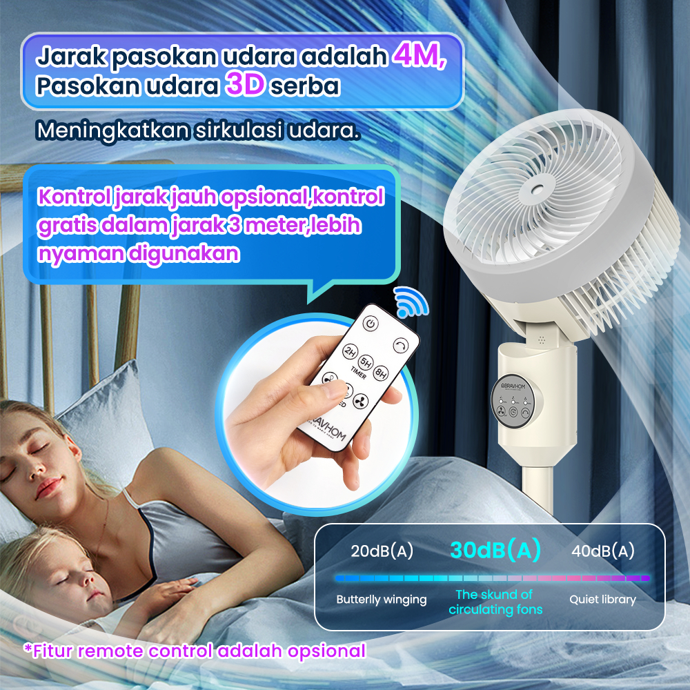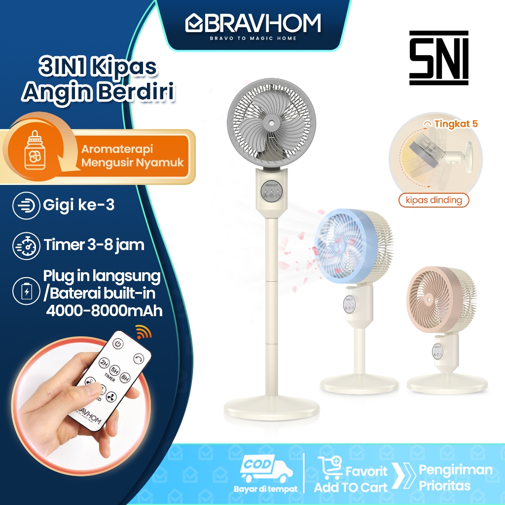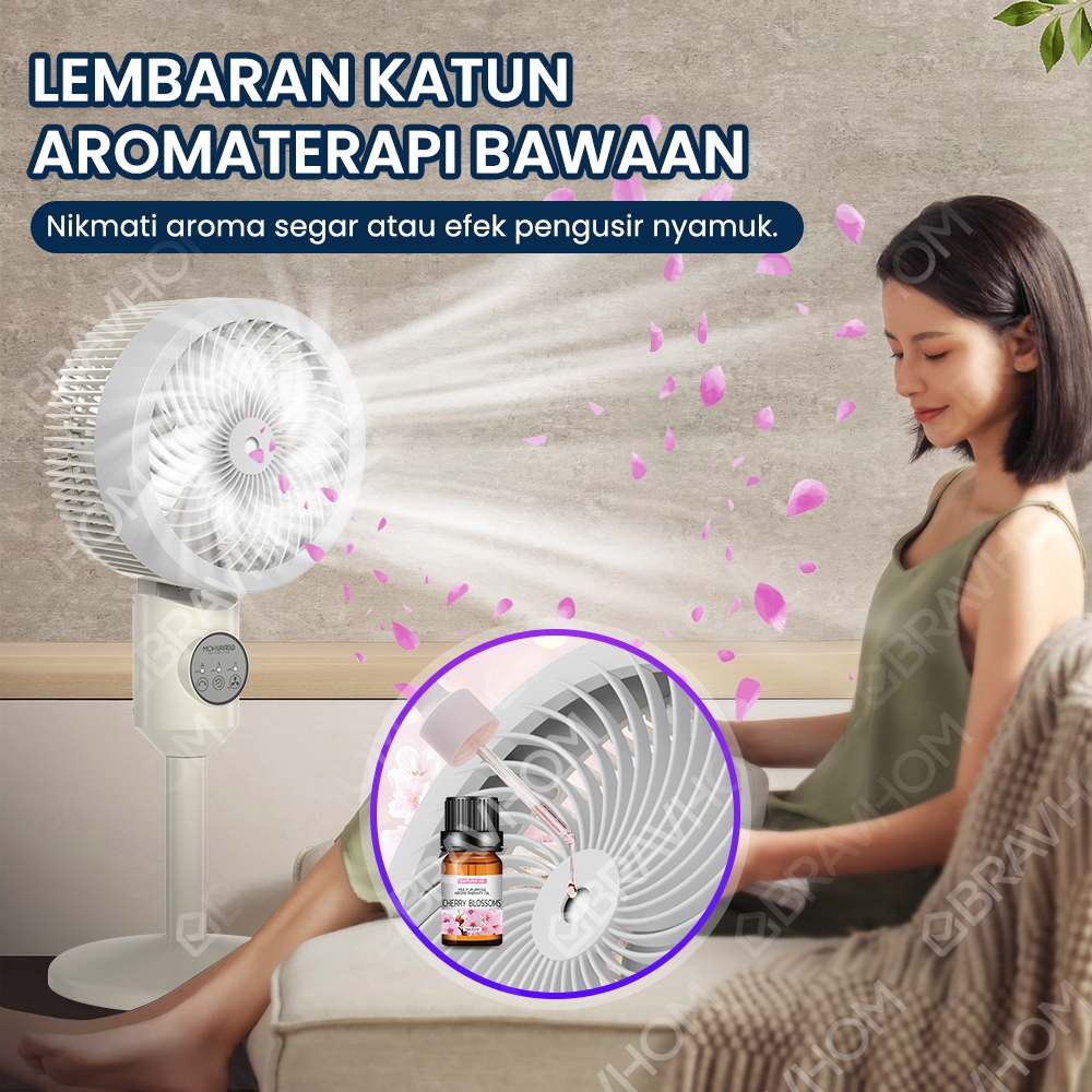 BRAVHOM Kipas Angin Berdiri Aesthetic Dinding 3IN1 4000-8000mAh Remote Aromaterapi Waktu 3-8Jam FN66