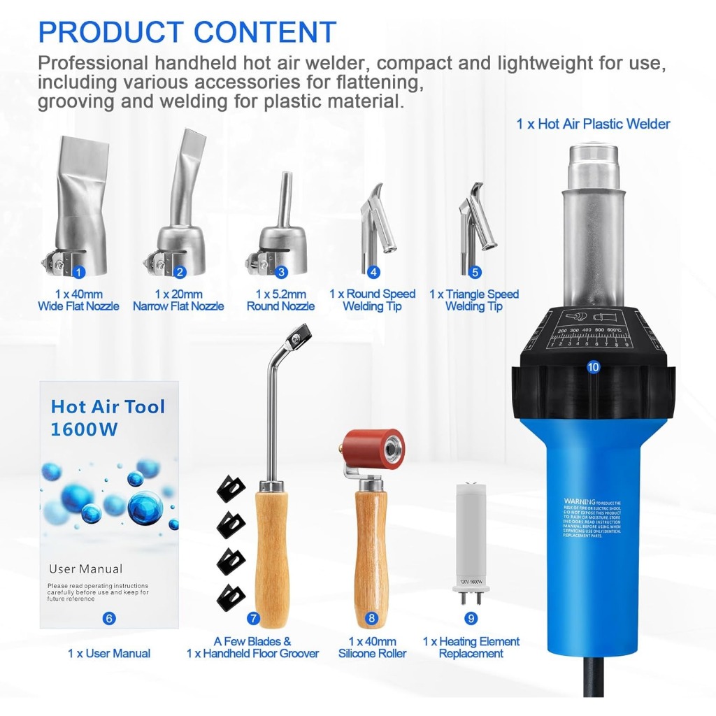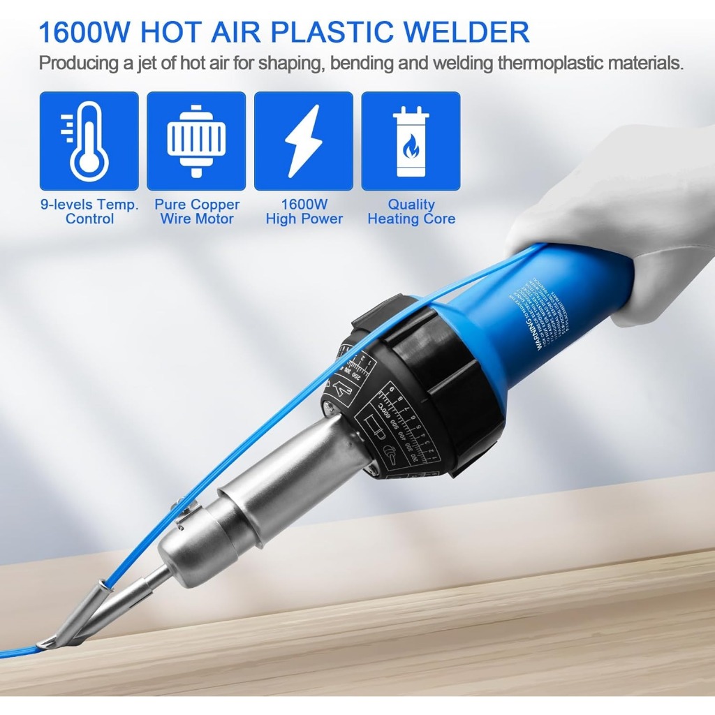 Hot Air Plastic Welder 1600W Plastic Welding Roofing Kit 110V, Vinyl PVC TPO Welding Handheld Plastic Hot Air Heat Gun W
