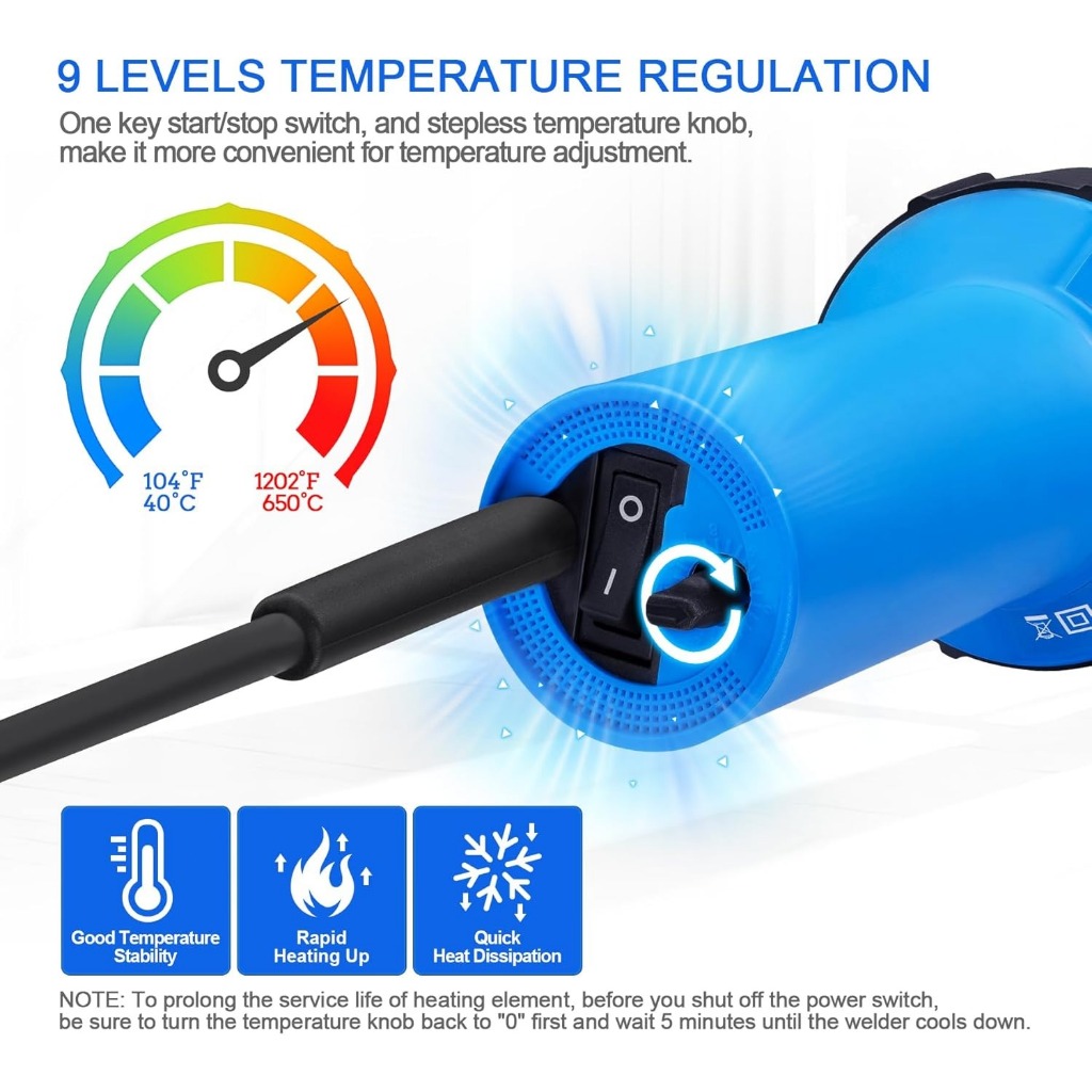 Hot Air Plastic Welder 1600W Plastic Welding Roofing Kit 110V, Vinyl PVC TPO Welding Handheld Plastic Hot Air Heat Gun W