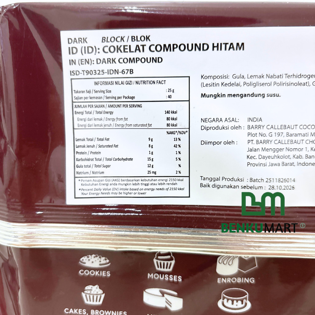 Van Houten Dark Compound Classic Block (1 Kg) | Coklat Cokelat Batang Van Houten Professional