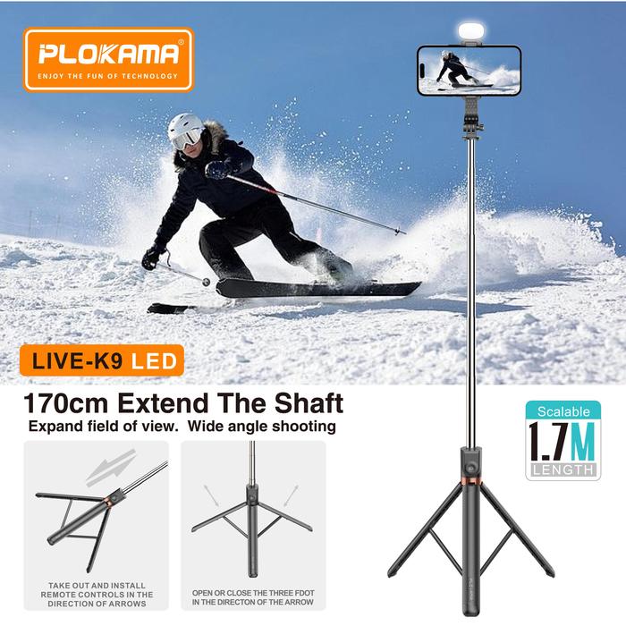 [Star] Tongsis Tripot Bluetooth 1.7m + Lampu Selfie LED 4 in 1 Tripod Hp Multifungsi