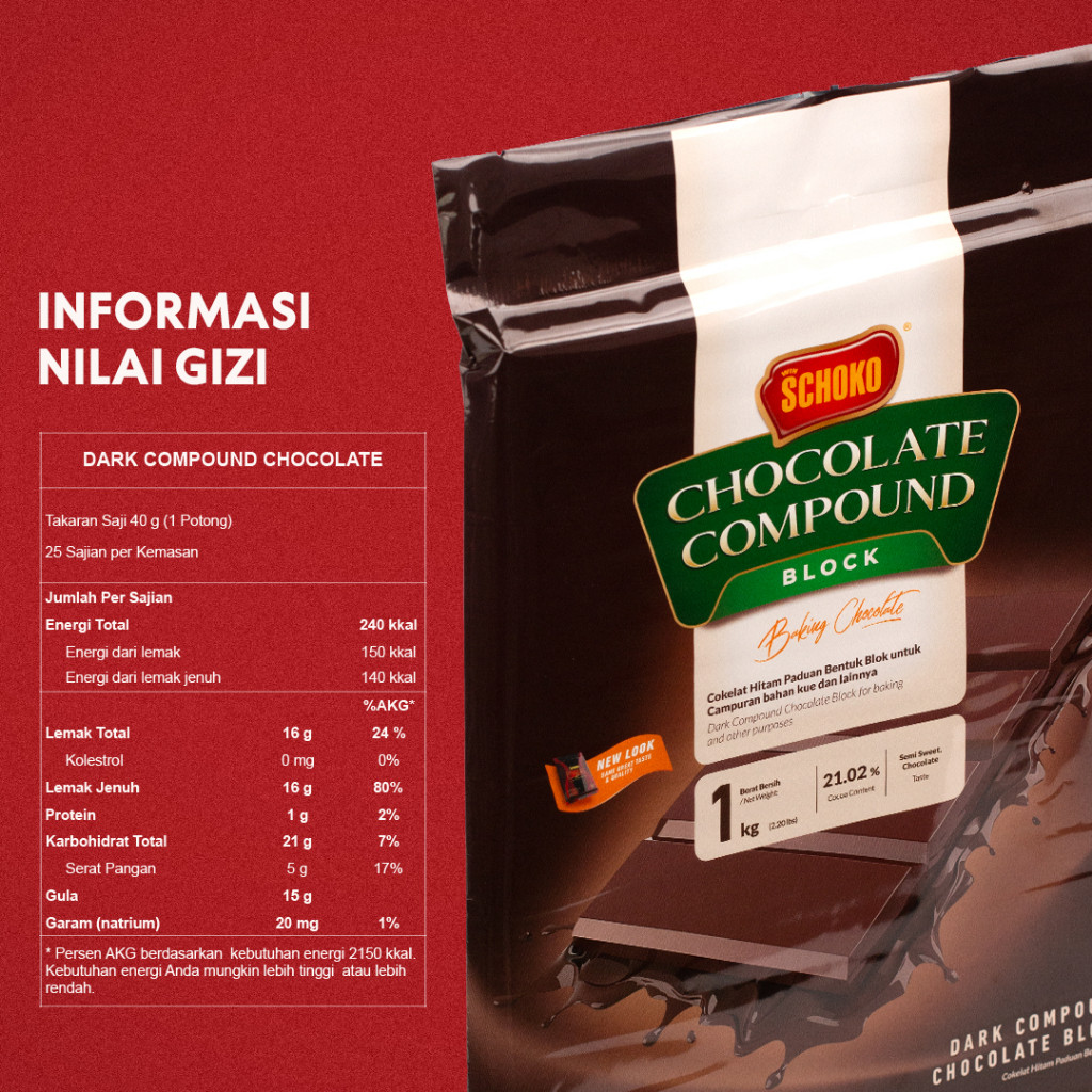 SCHOKO Dark Compound Chocolate Block / Cokelat Batangan - 1kg