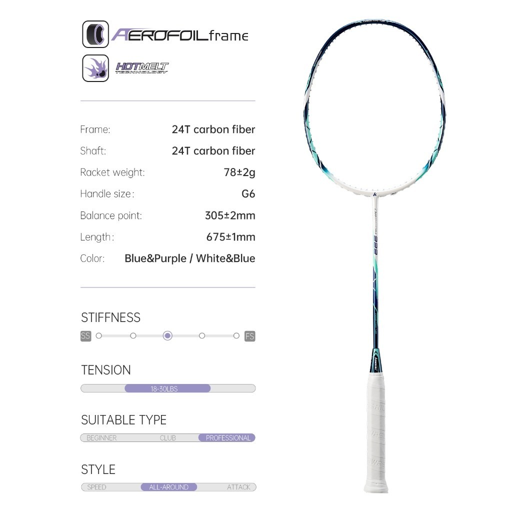Kawasaki Dragon RAKET BADMINTON 222 5U 18-30lbs Karbon Penuh Untuk Pemula RAKET BULU TANGKIS ISI 1 FREE BAG