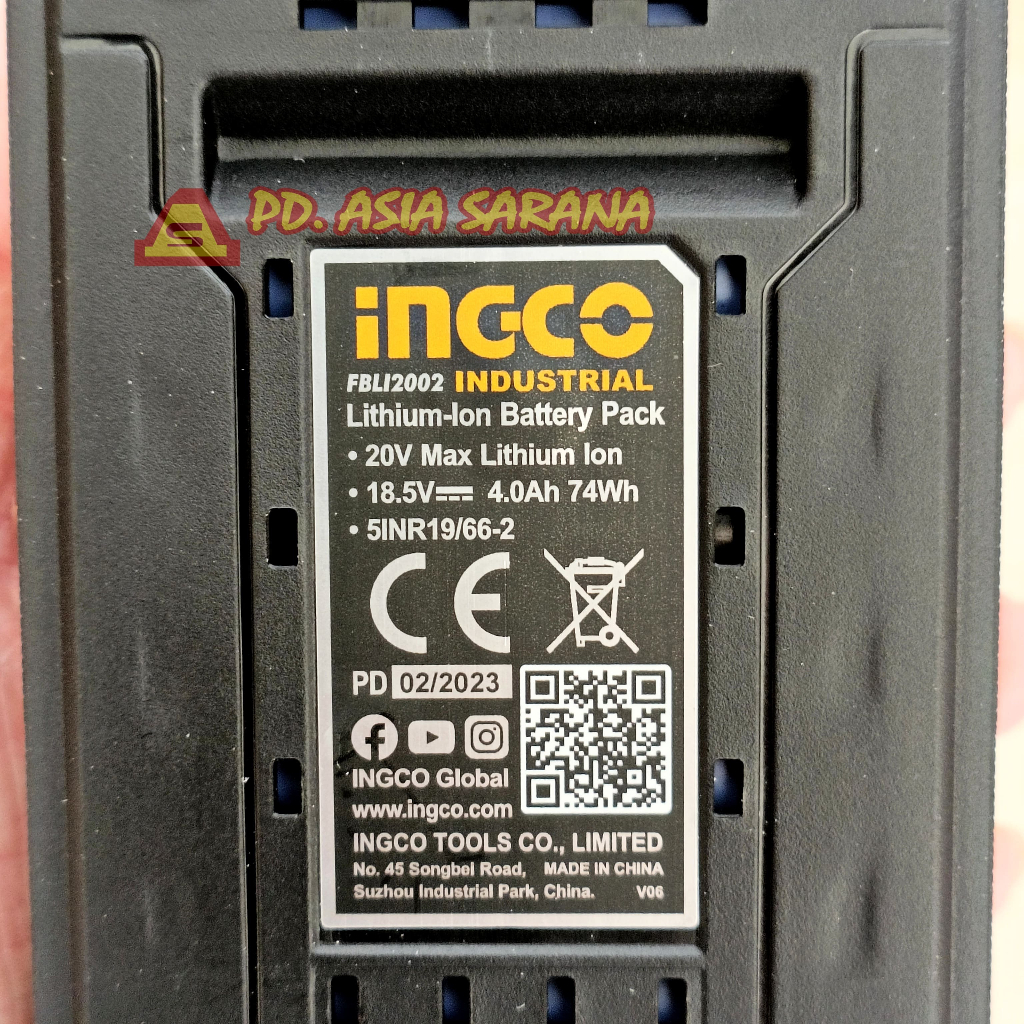 PAKET Baterai 4Ah FBLI2002 Rapid Fast Charger FCLI20411 INGCO 4.0 P20S
