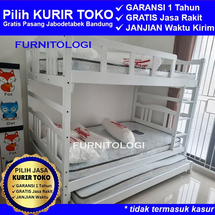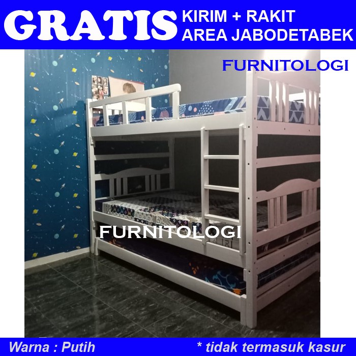 Ranjang Susun 3 Tingkat uk 120x200 Dipan Tingkat Kayu Tempat Tidur Tingkat Sorong Bunk Bed