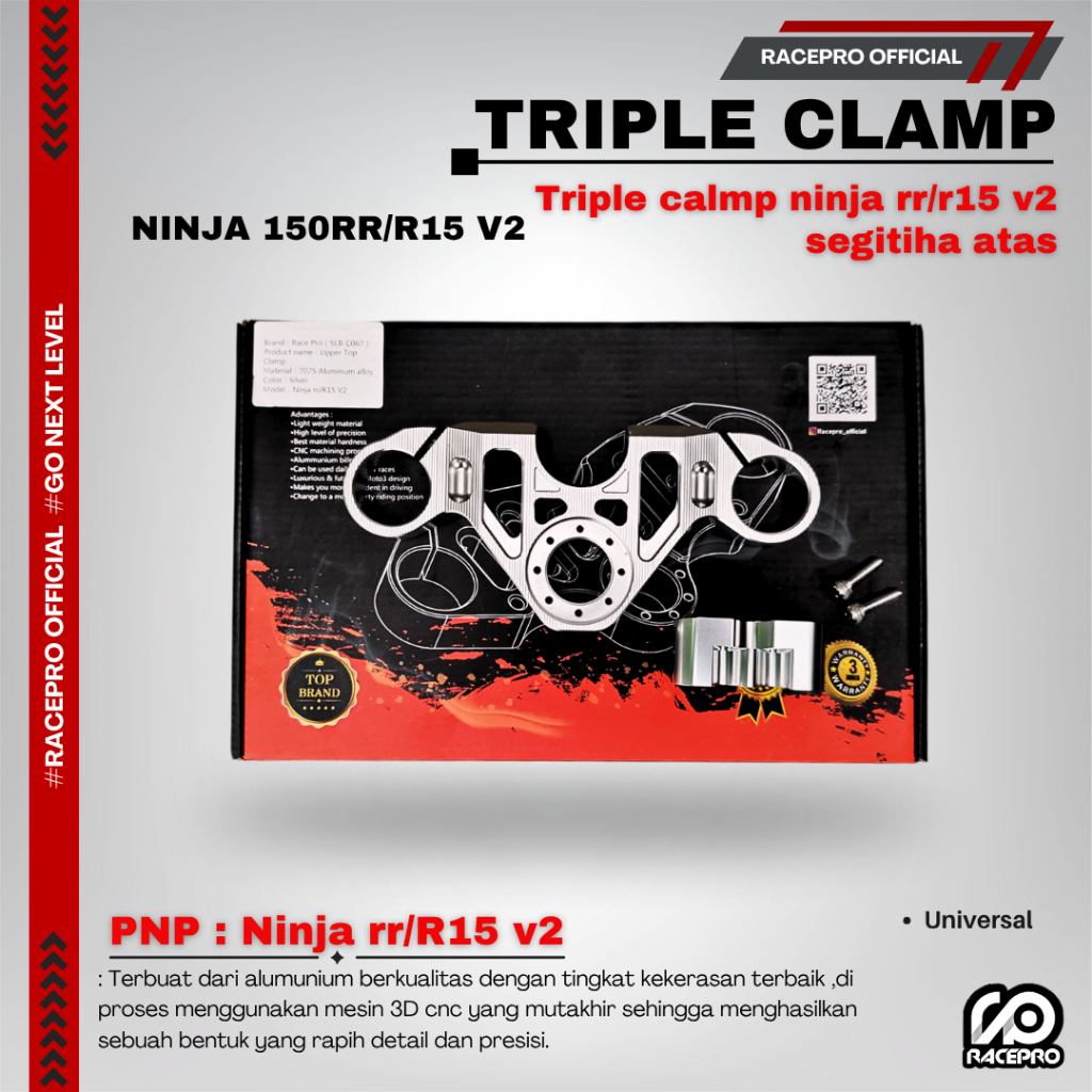 TRIPLE CLAMP NINJA 150RR & R15 V2 SEGITIGA ATAS RACEPRO FOR NINJA RR & R15 V2 TRIPLE CLAMP RACEPRO