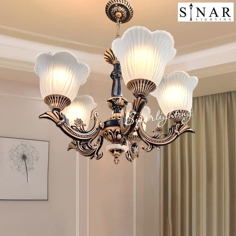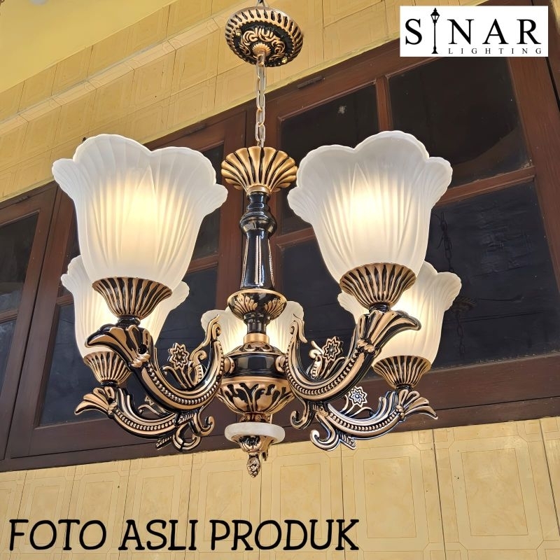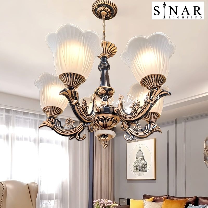 Lampu hias gantung klasik 5 cabang kaca S780T