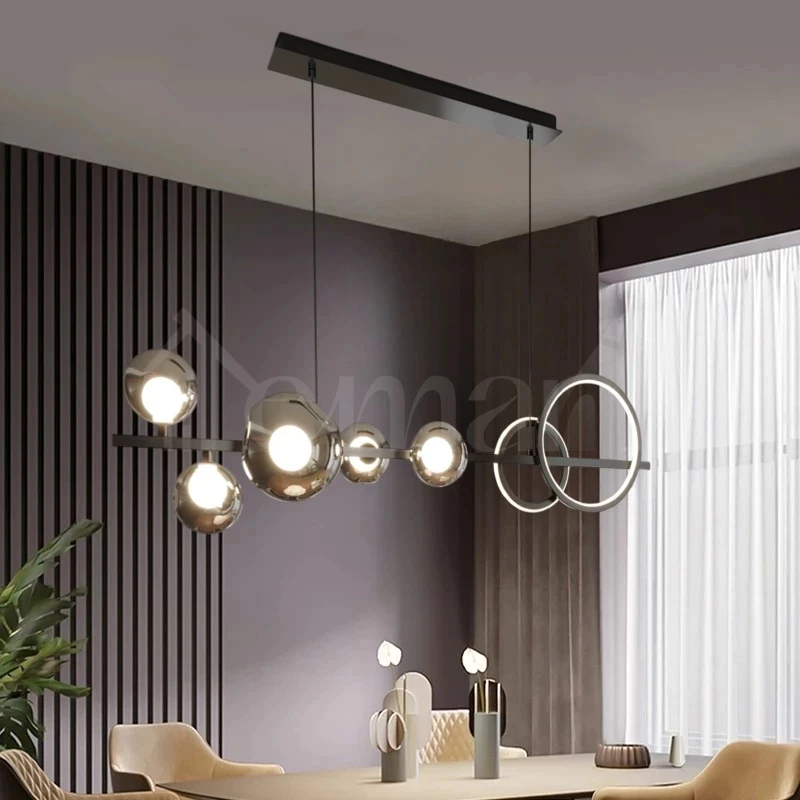 ⚡Garansi+Ready⚡Lampu Gantung Minimalis 95cm 7 Bola Kaca Abu-abu 3 warna LED Lampu Hias Gantung Meja Makan Mini Bar Untuk