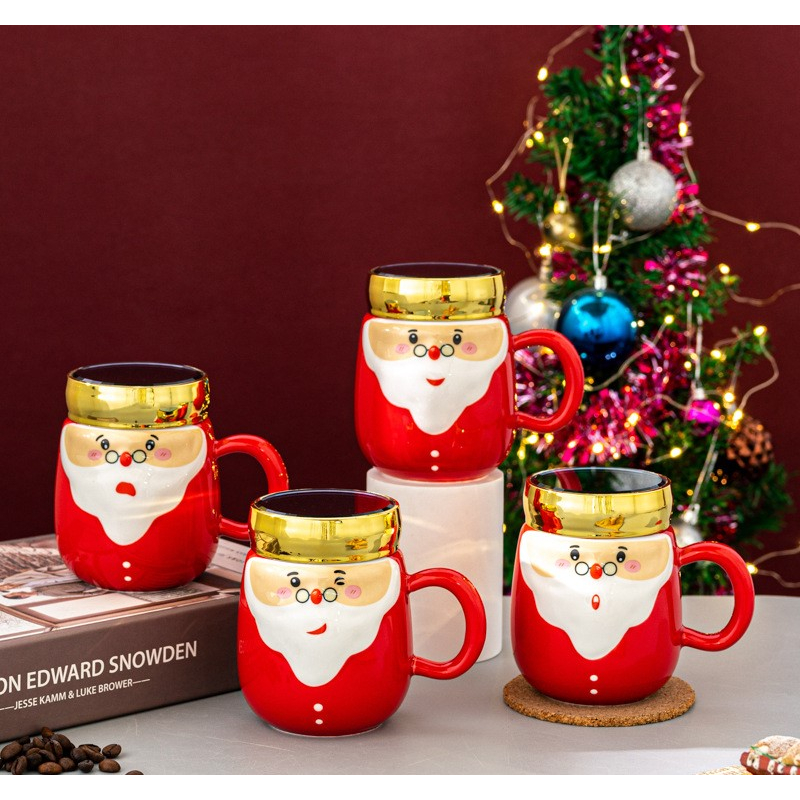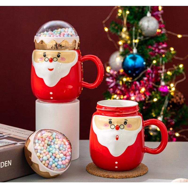 Gelas // MUG Ceramic Natal PomPom Lucu Santa Clause // Hampers Souvenir // DENGAN BOX