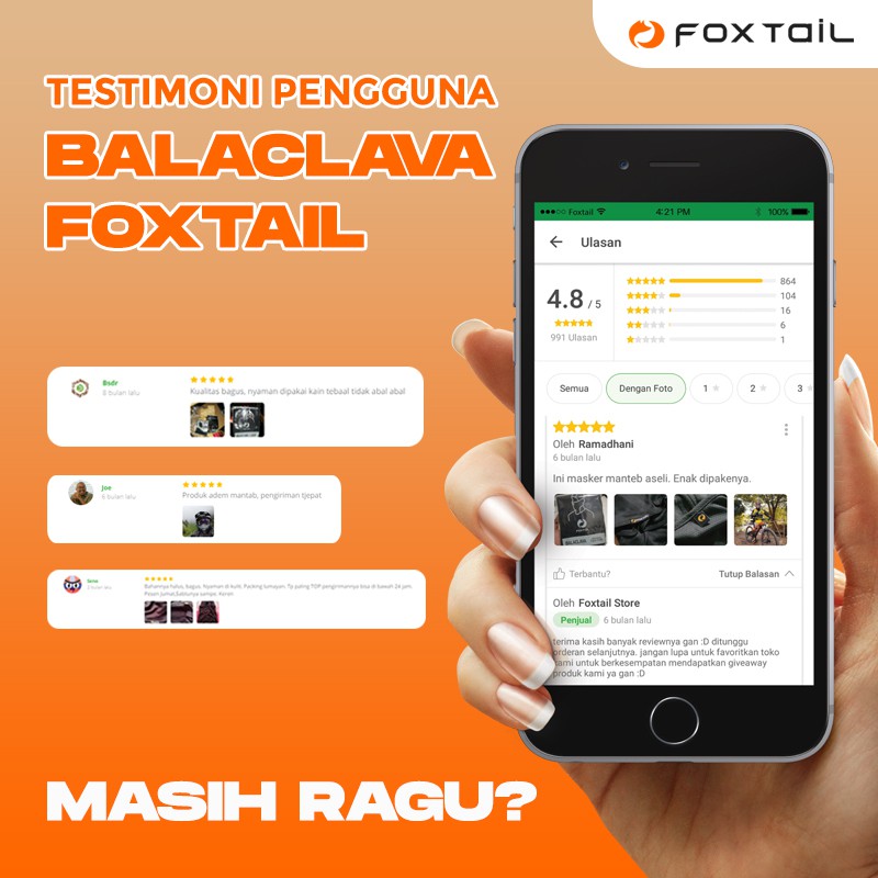 Foxtail Original Balaclava Quick Dry Masker Kepala Motor Anti Panas