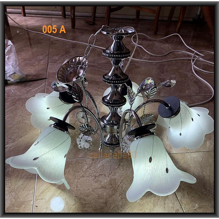 Lampu Gantung Minimalis Mewah 5 Lampu Kaca Bunga