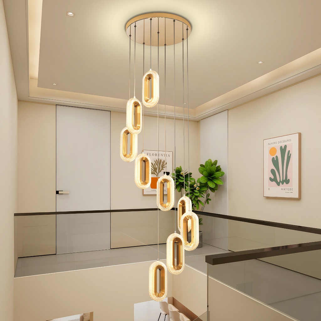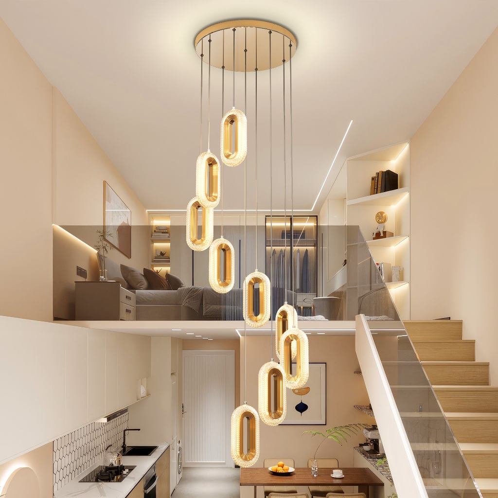 ✌Garansi&✌Lampu Hias Gantung Kristal Mewah Lampu Gantung Rangkaian 8 LED Lampu Gantung Tangga Vila/Hotel AMG