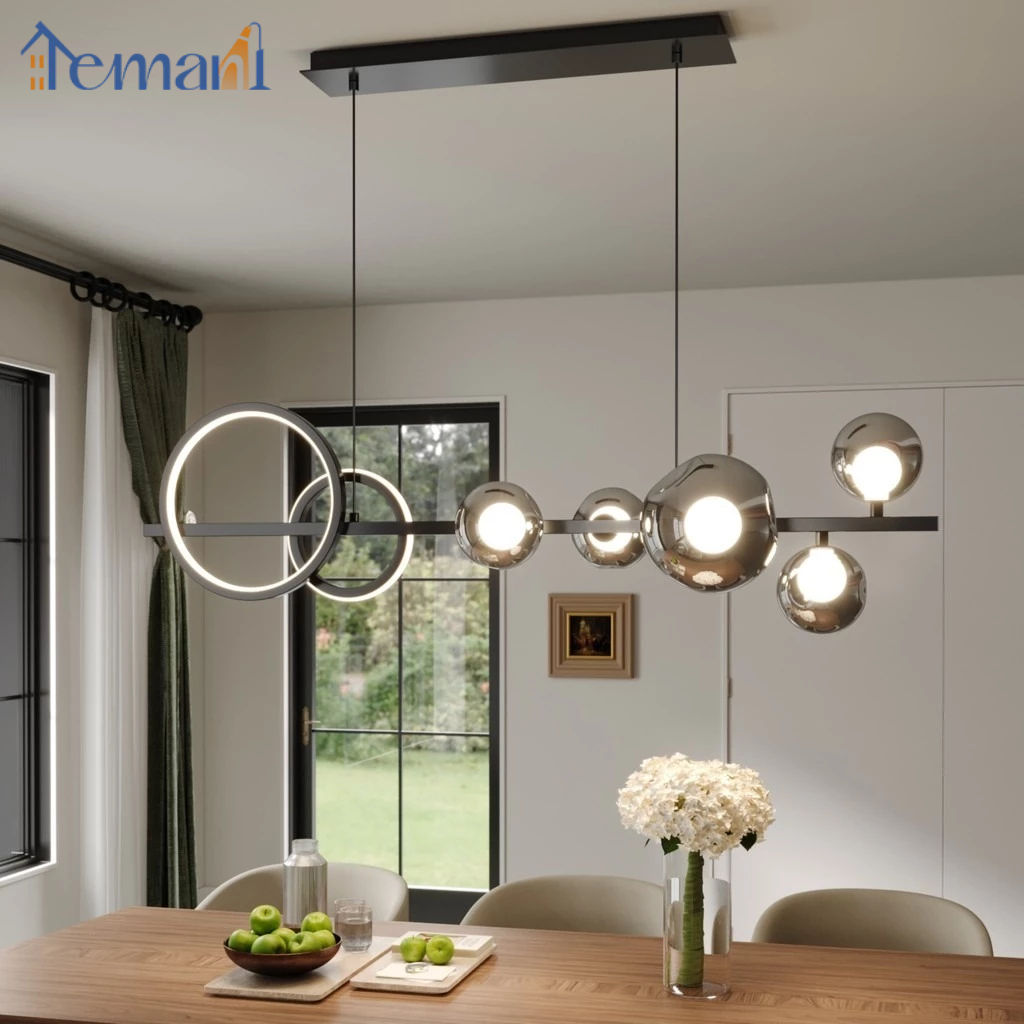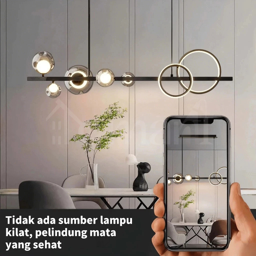 ⚡Garansi+Ready⚡Lampu Gantung Minimalis 95cm 7 Bola Kaca Abu-abu 3 warna LED Lampu Hias Gantung Meja Makan Mini Bar Untuk