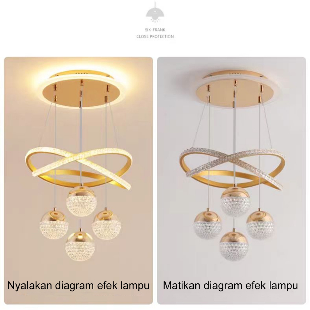 Lampu Gantung Ruang Tamu Minimalis Lampu Hias Gantung LED Lampu Gantung Emas Mewah Lampu Gantung Plafon 3 Warna