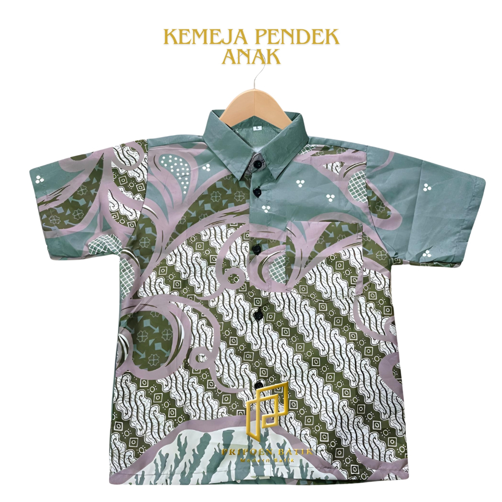 PRIPOEN BATIK kemeja batik anak umur 2-12 tahun warna biru denim buat kesekolah Katun Laki-Laki