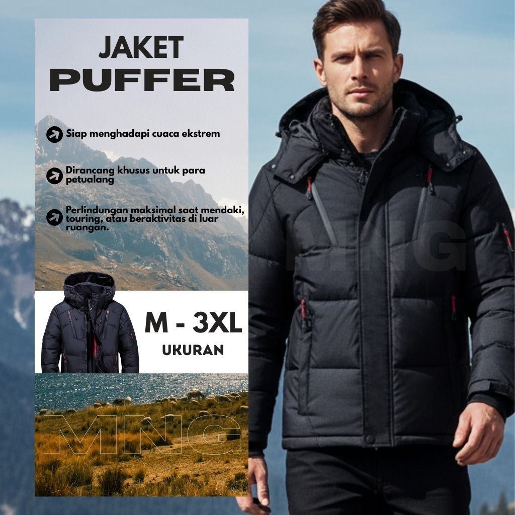 Jaket Pria Gelembung Waterproof Tebal Warna Hitam Gunung