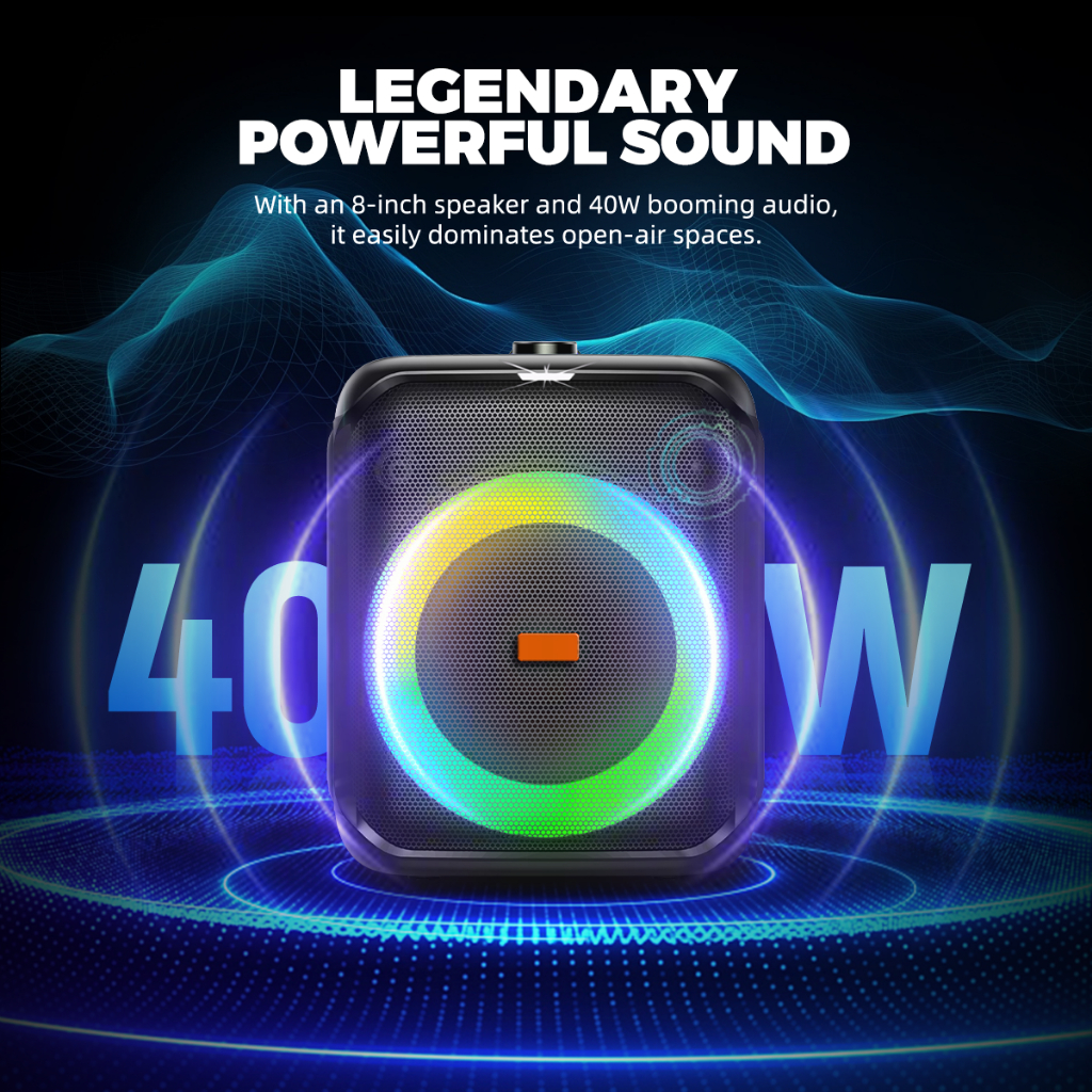 MAIKET Speaker Bluetooth Karaoke Salon Party Speaker 40W Ultra Super Bass USB/FM/AUX 2 Mic Wireless 8 Inch