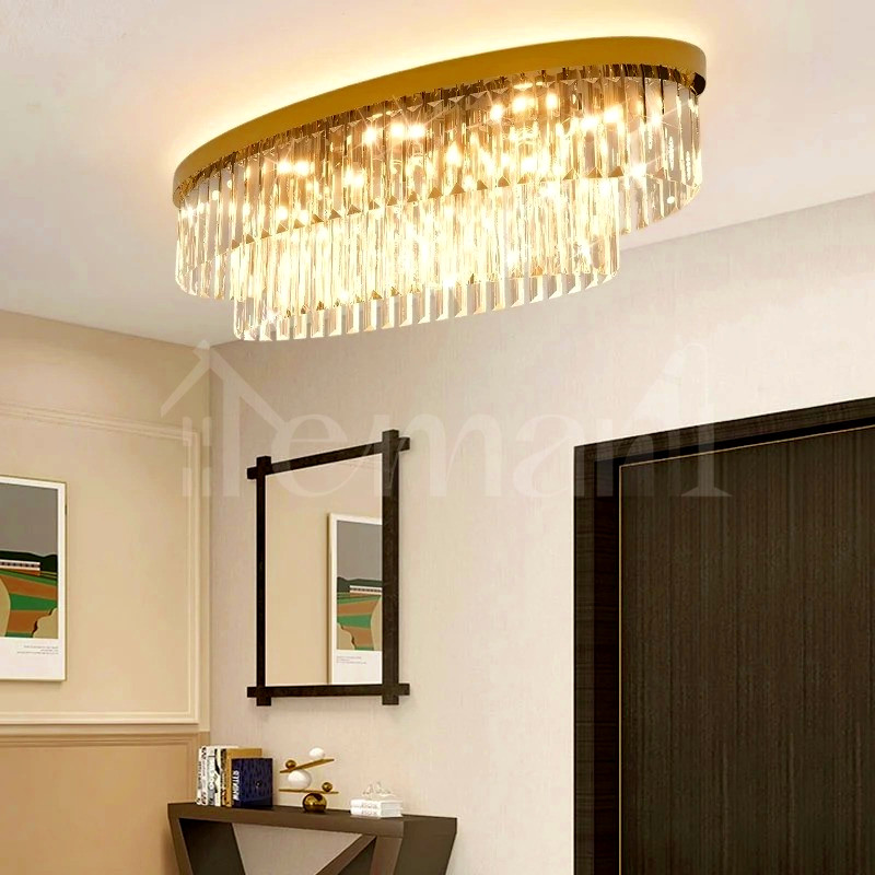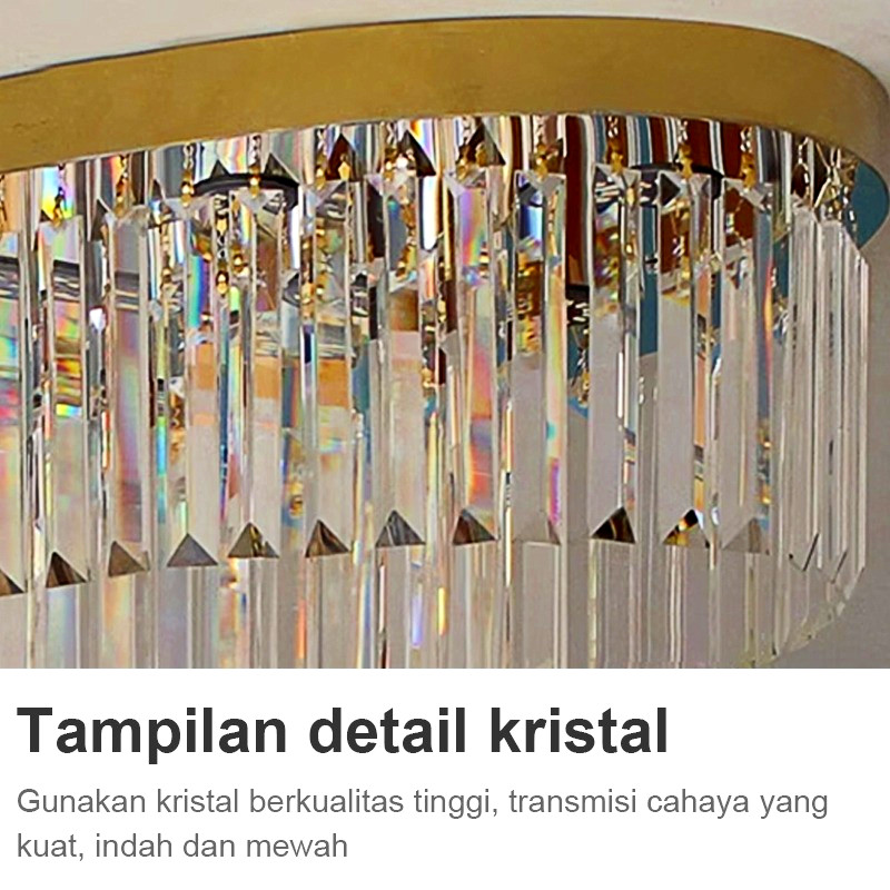 Lampu Kristal Gantung Ruang Tamu Mewah Besar 50cm Restoran Chandelier Mewah 3 Warna 60W LED Lampu Hias Plafon Kristal Pa