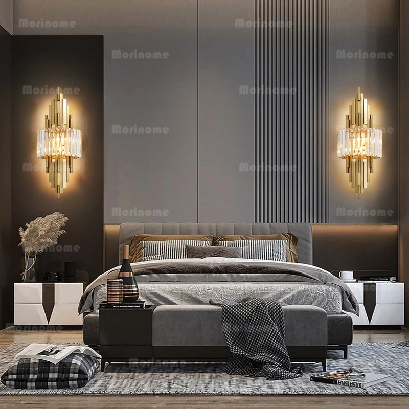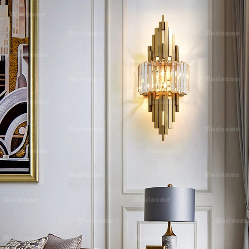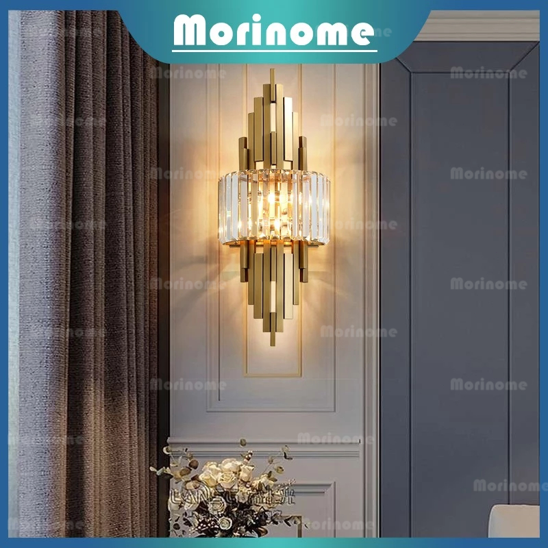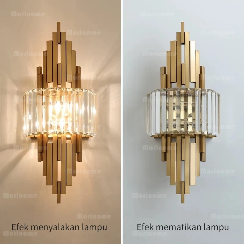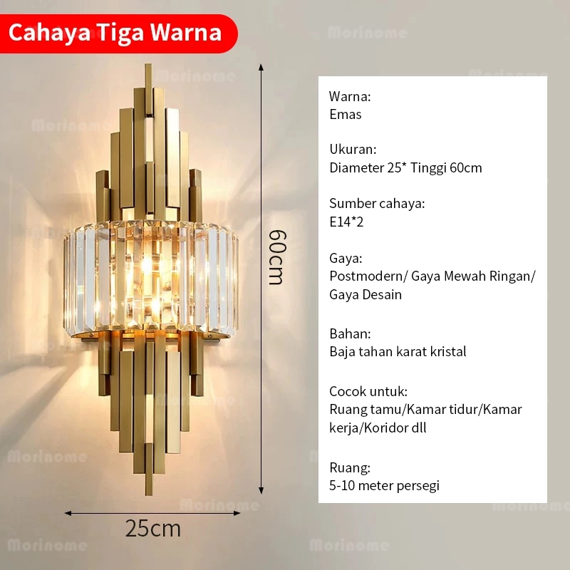 Lampu Dinding Kristal Kamar Tidur Ruang Tamu Modern Vintage Mewah Emas 60cm LED 3 Warna Lampu Hias Dinding Lampu Samping
