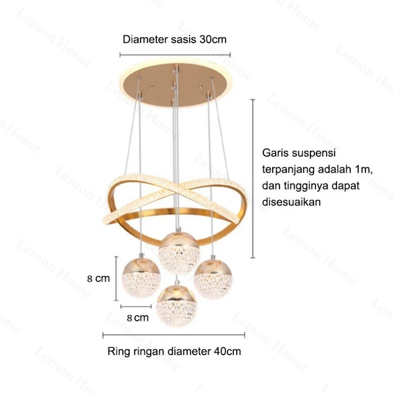Lemon Home ⭐Garansi 1 Tahun⭐ Lampu Gantung Minimalis Kristal Lampu Hias Gantung Ruang Tamu Lampu Gantung Ruang Makan Mew